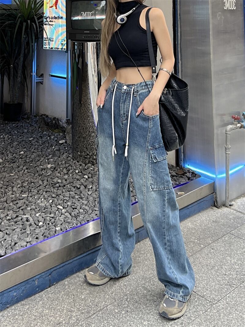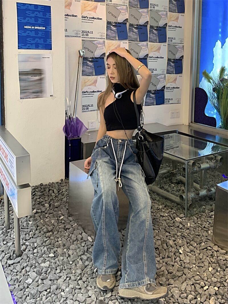 【韓国通販 dgo】ハイウエストカジュアルサマーストレートジーンズ(W2874)