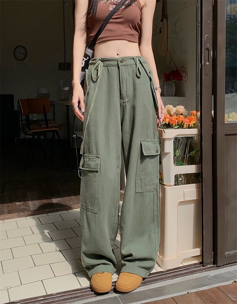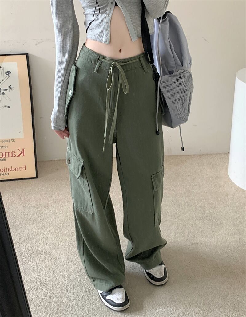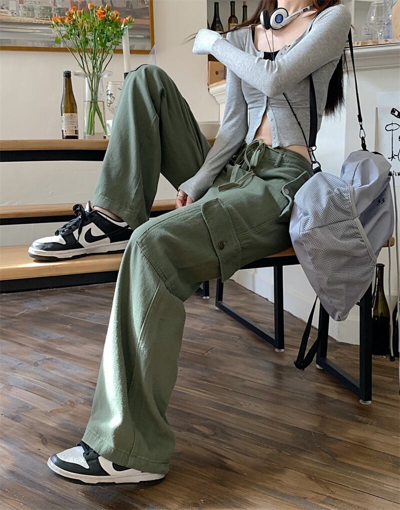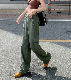 【韓国通販 dgo】ハイウエストワイドレッグカーゴパンツ アーミーグリーン(W2867)トレンドアイテム
