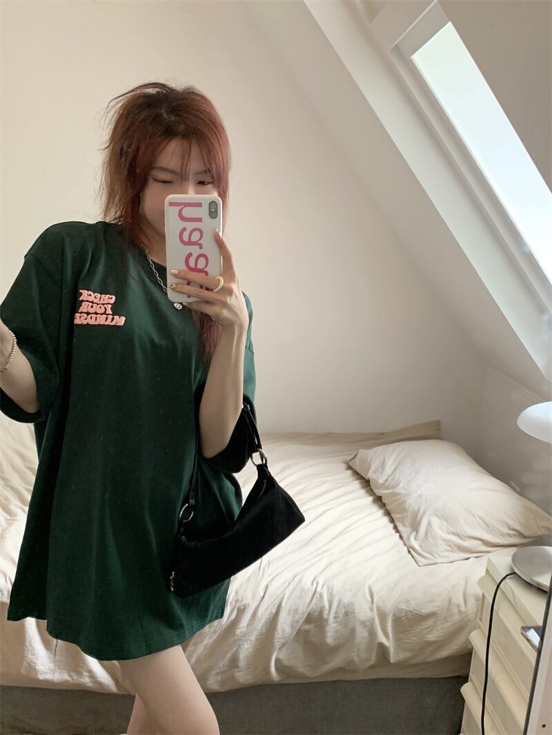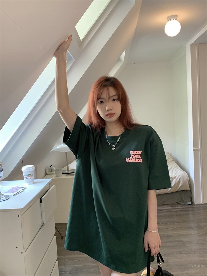 【韓国通販 dgo】オーバーサイズ 英レターバックプリントT ダークグリーン(W2852)