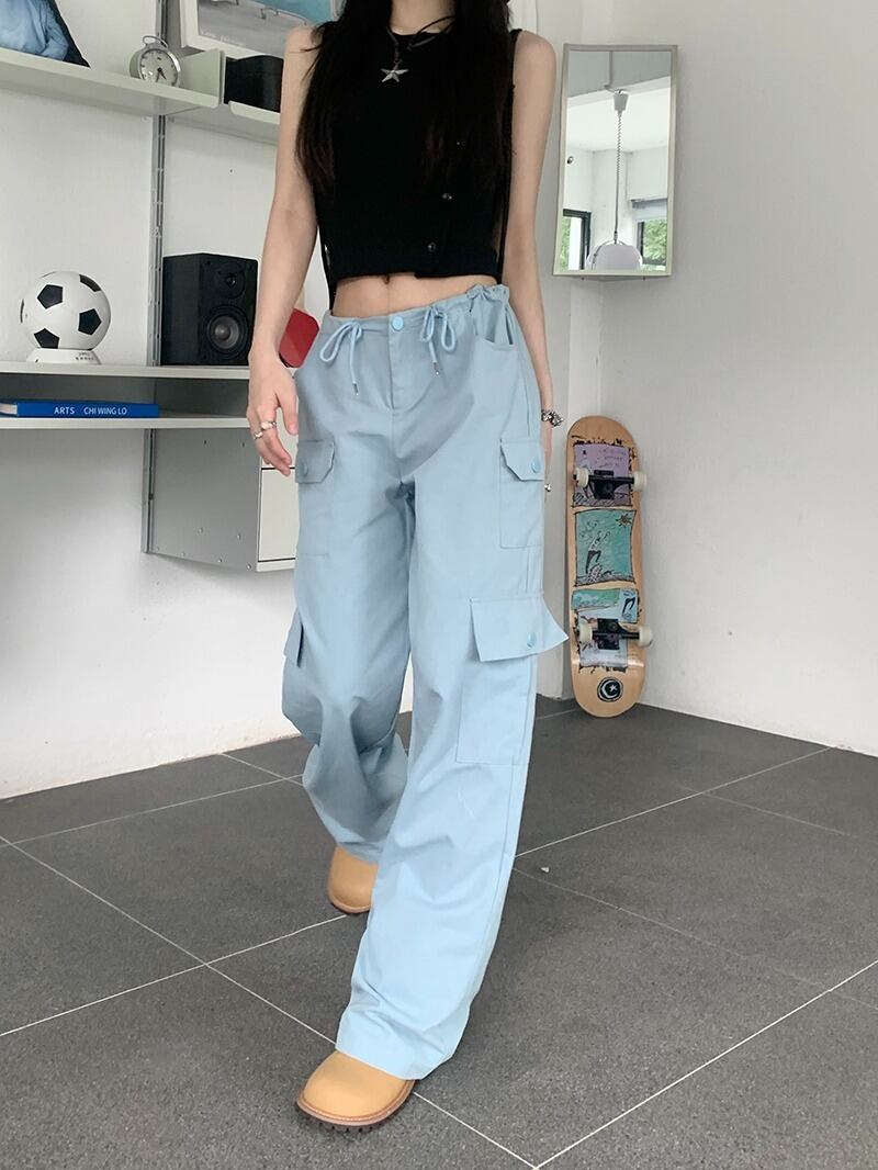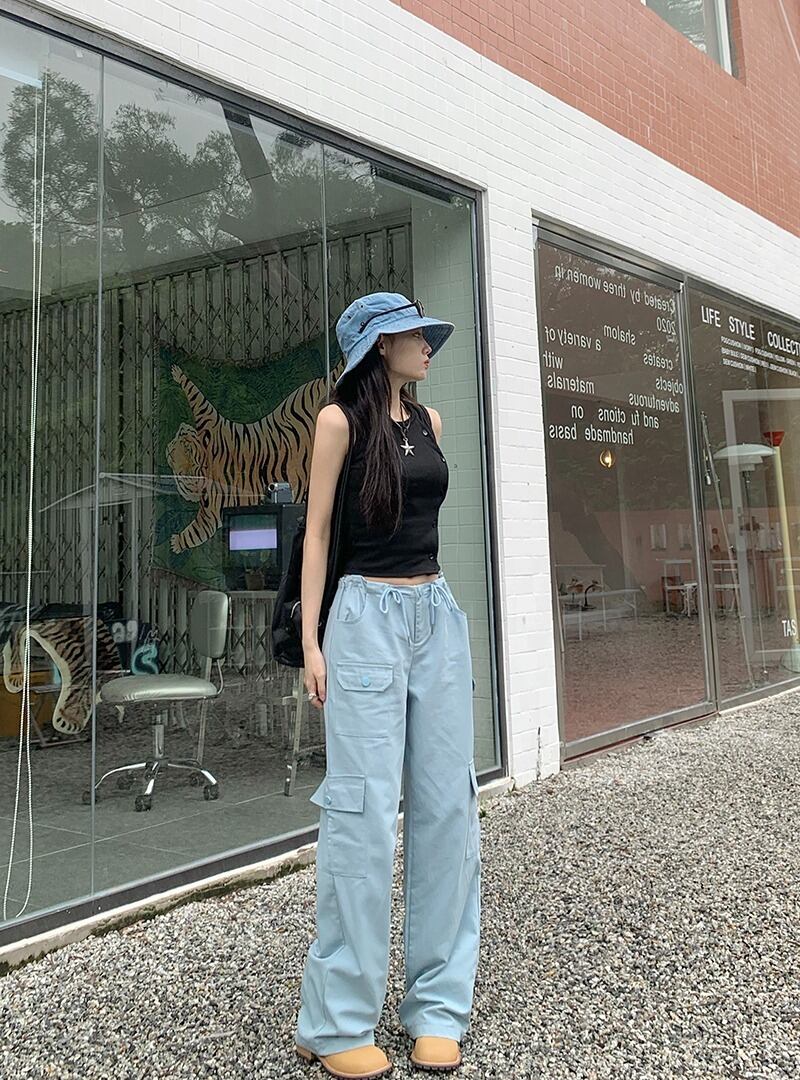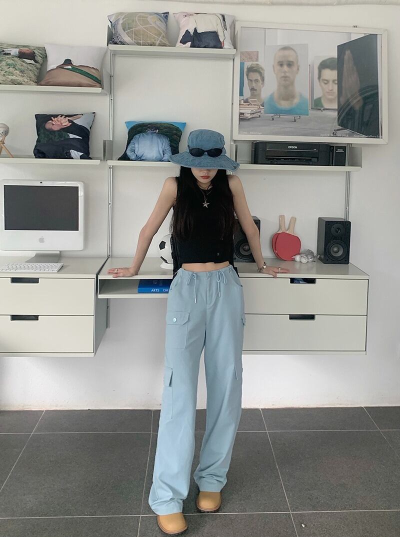 【韓国通販 dgo】ワイドレッグストレートカーゴパンツ ブルー(W2847)トレンドアイテム