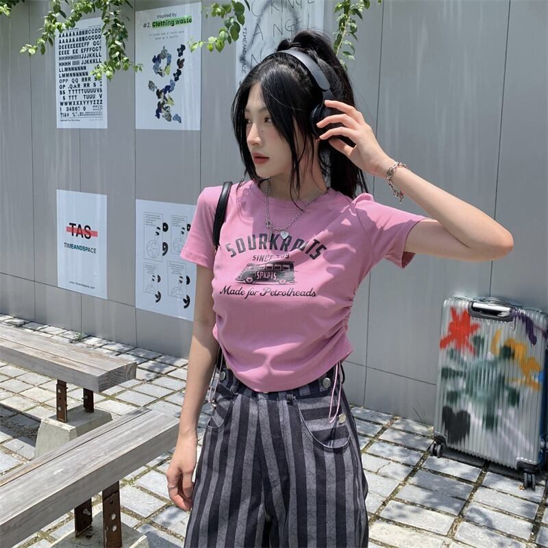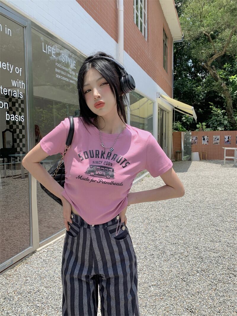 【韓国通販 dgo】2colors 英レタープリントTシャツ ピンク/ブラック(W2844)センス溢れるファッションitem