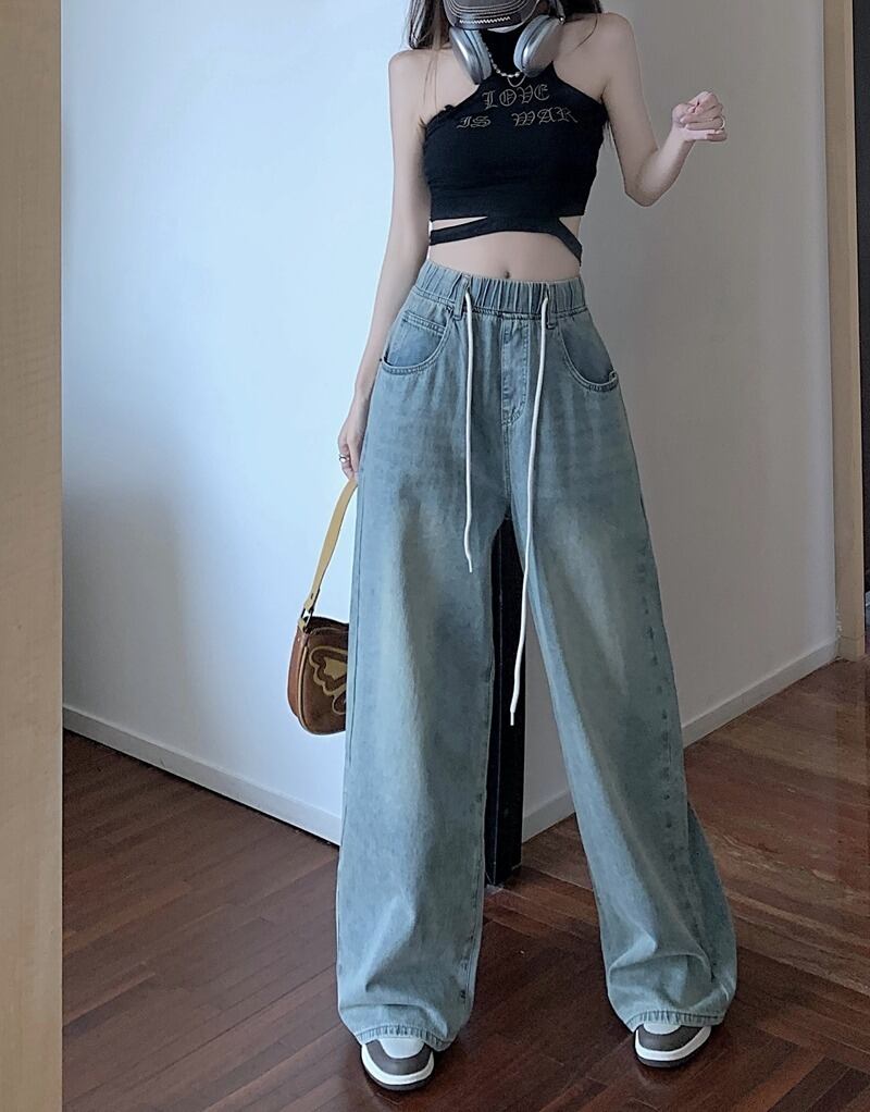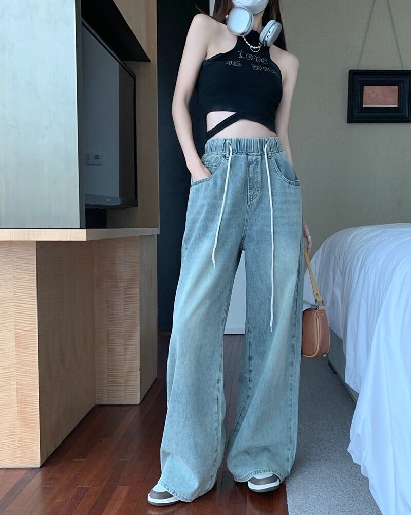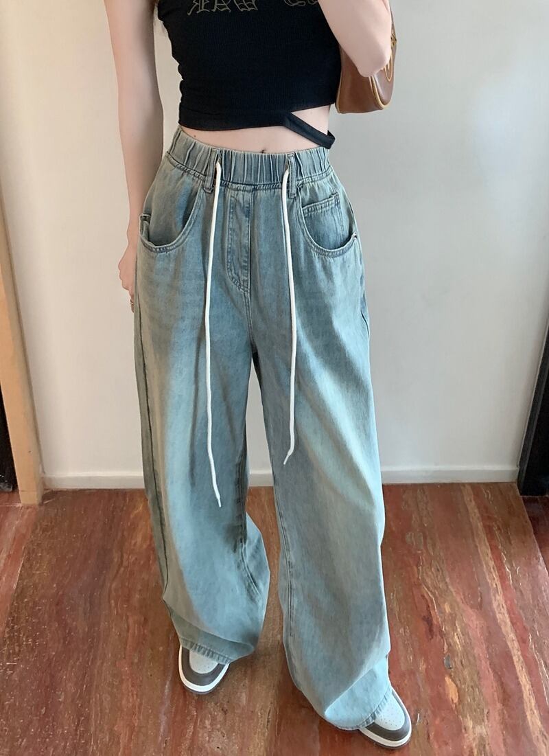 【韓国通販 dgo】ハイウエストルーズワイドレッグジーンズ ブルー(W2909)センス溢れるファッションitem