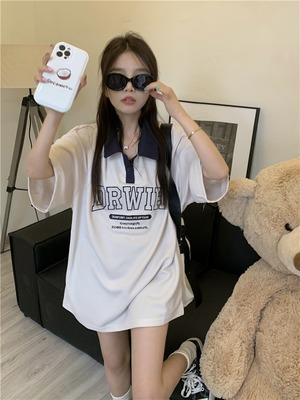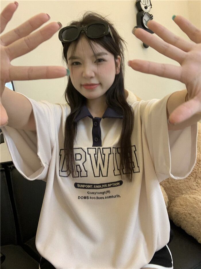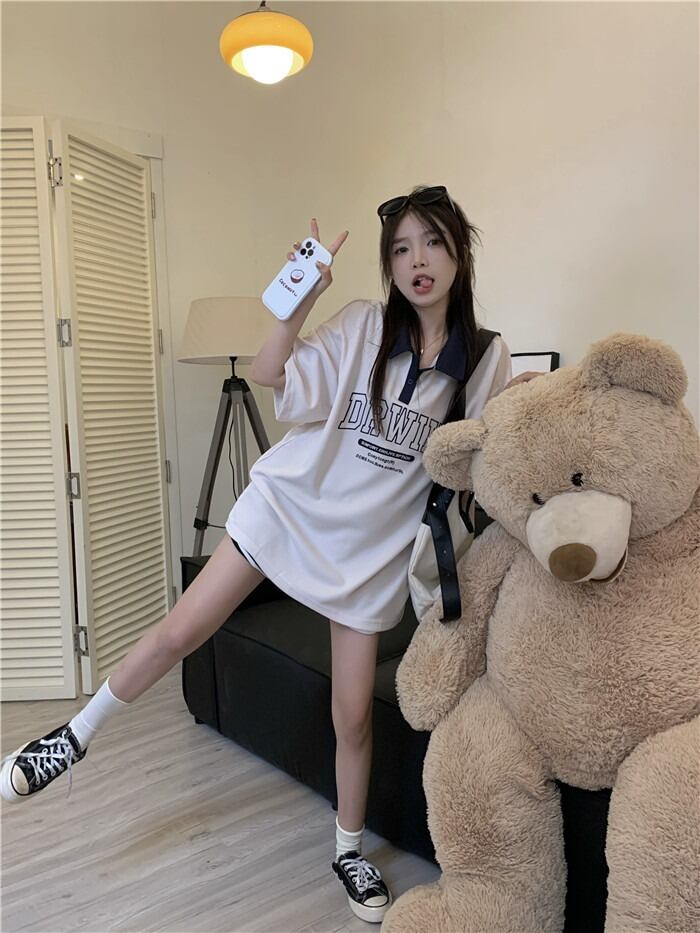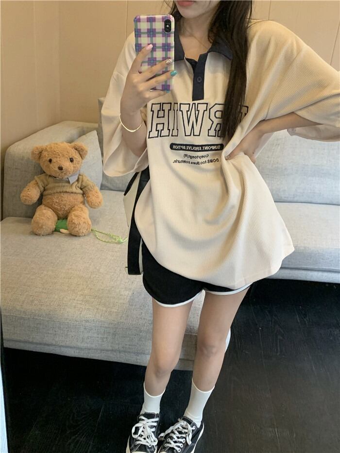 【韓国通販 dgo】オーバーサイズポロ襟英レタープリントTシャツ ベージュ(W2908)センス溢れるファッションitem
