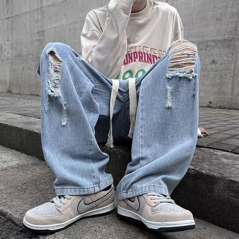 【韓国通販 dgo】ダメージ加工ルーズストレートジーンズ ブルー(M2906)センス溢れるファッションitem