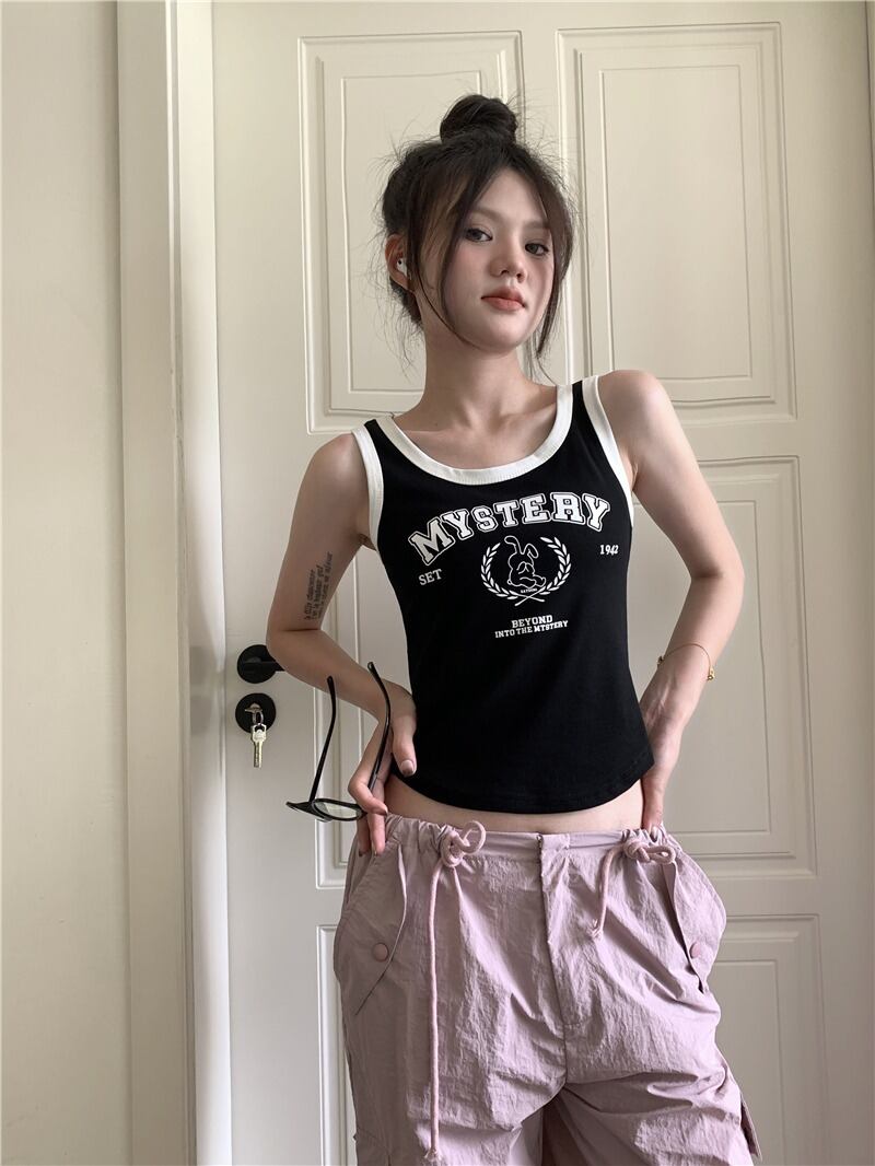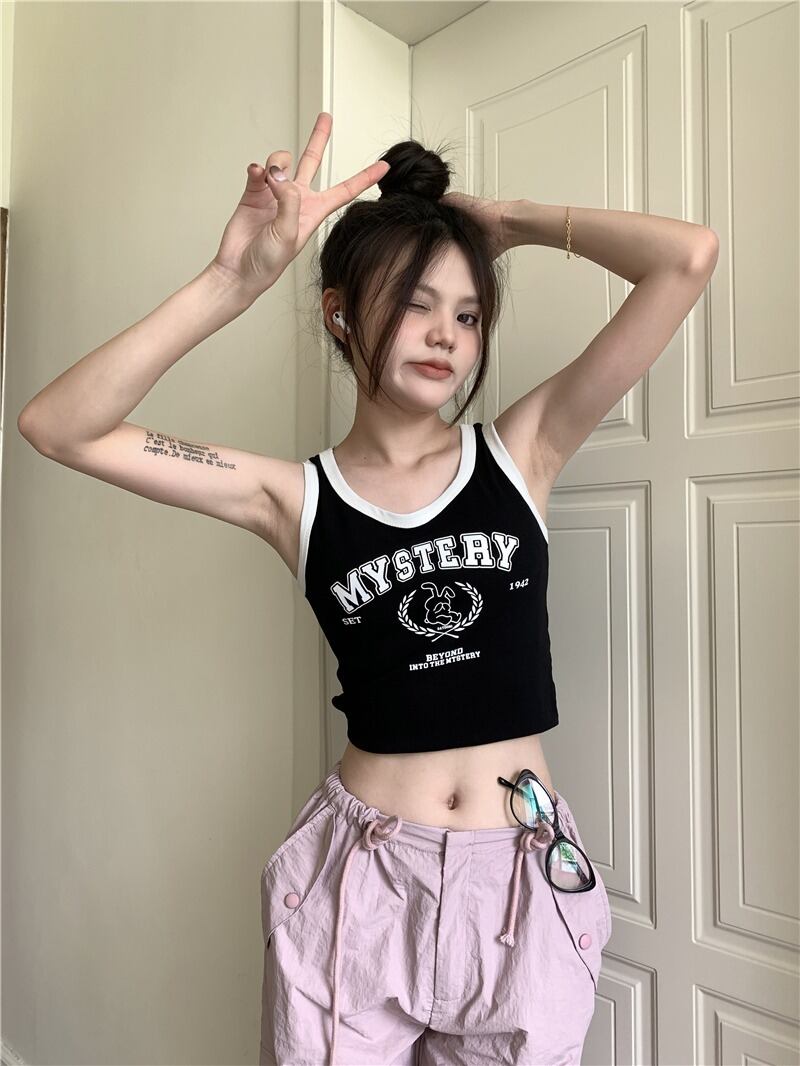 【韓国通販 dgo】3colors 英レタープリントショートトップス ブラック/ホワイト/アイボリー(W2904)