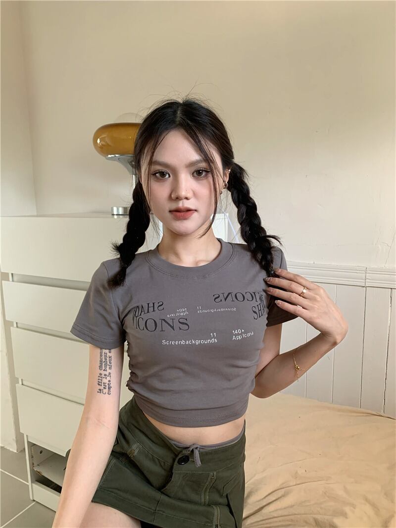 【韓国通販 dgo】4colors ドローストリングクロップドT グレー/カーキ/ホワイト/ブラック(W2887)トレンドアイテム