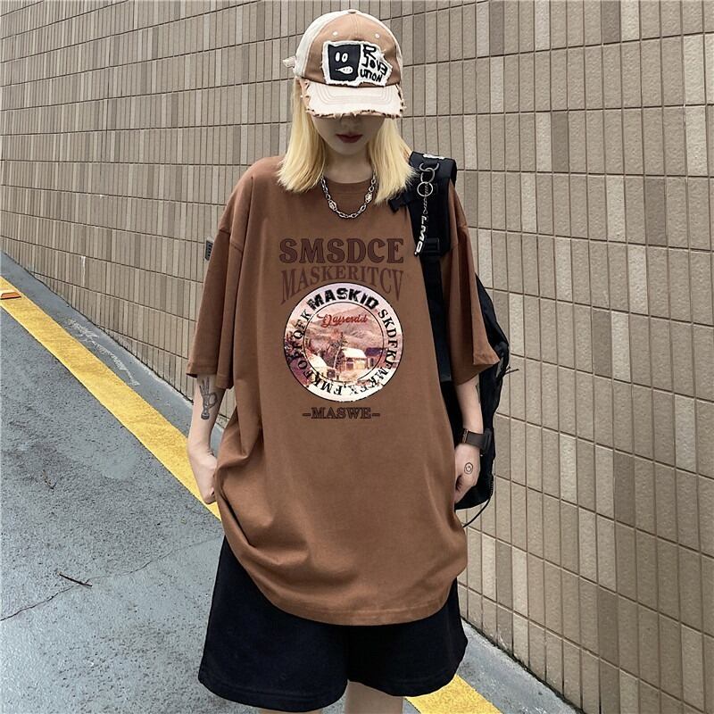 【韓国通販 dgo】2colors ユニセックス オーバーサイズアルファベットプリントT アイボリー/ブラウン(M2876)センス溢れるファッションitem
