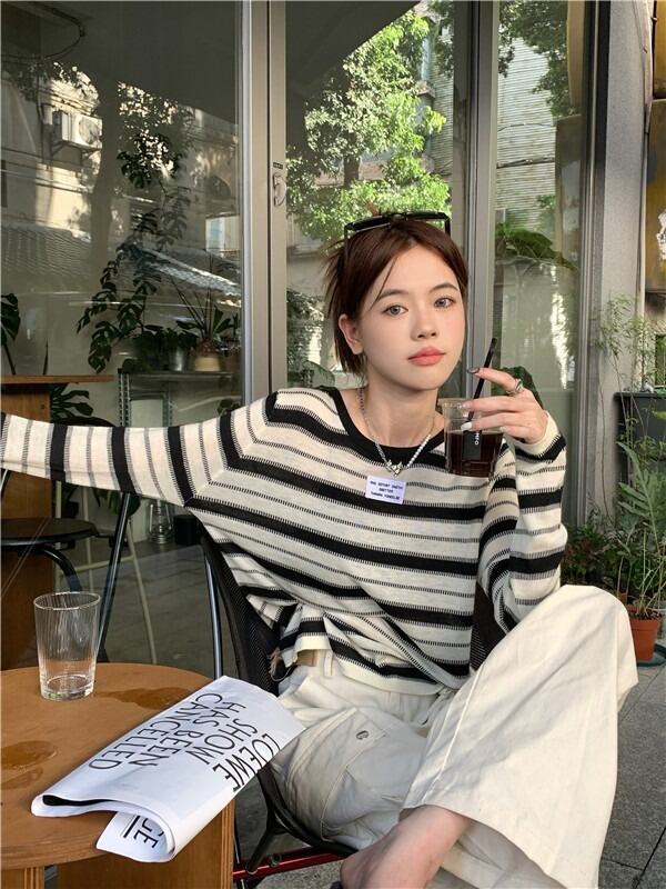 【韓国通販 dgo】ストライプUV長袖ニット(W2944)センス溢れるファッションitem