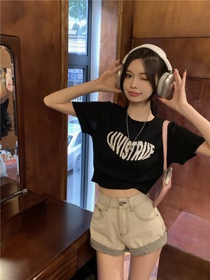 【韓国通販 dgo】2colors クロップドアルファベットプリントT ピンク/ブラック(W2923)センス溢れるファッションitem