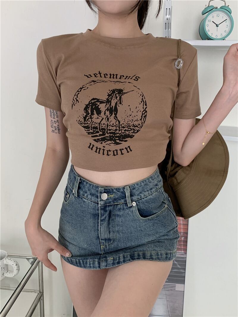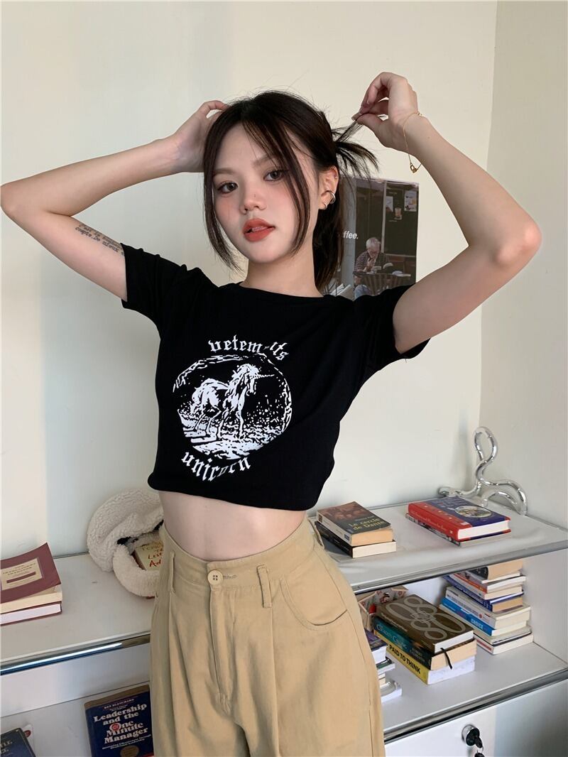 【韓国通販 dgo】3colors クロップドプリントT ブラウン/ブラック/ホワイト(W2917)トレンドアイテム