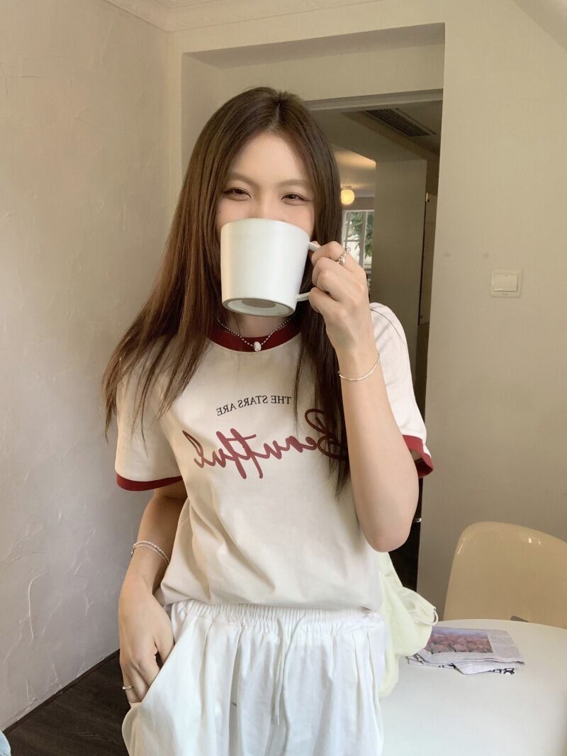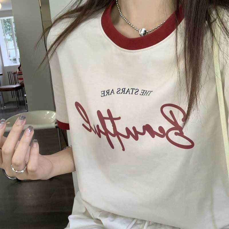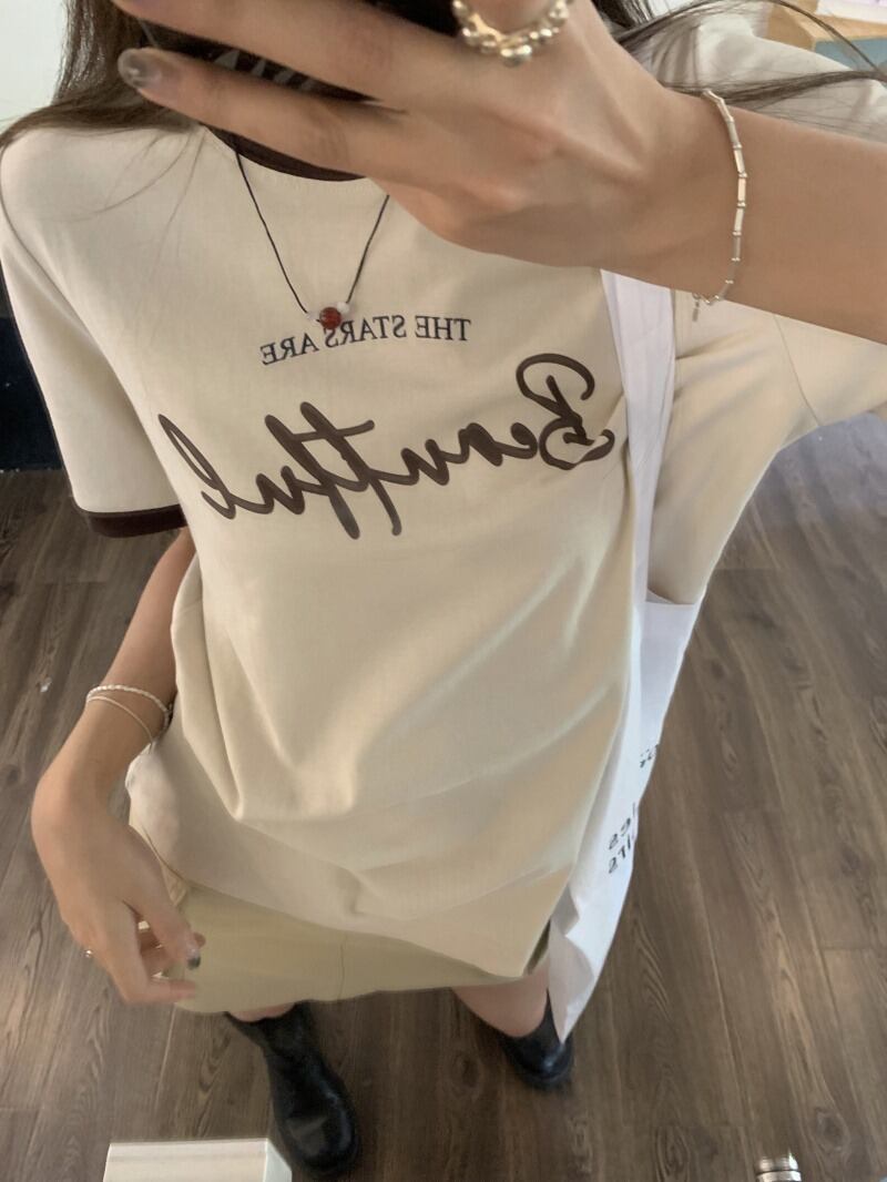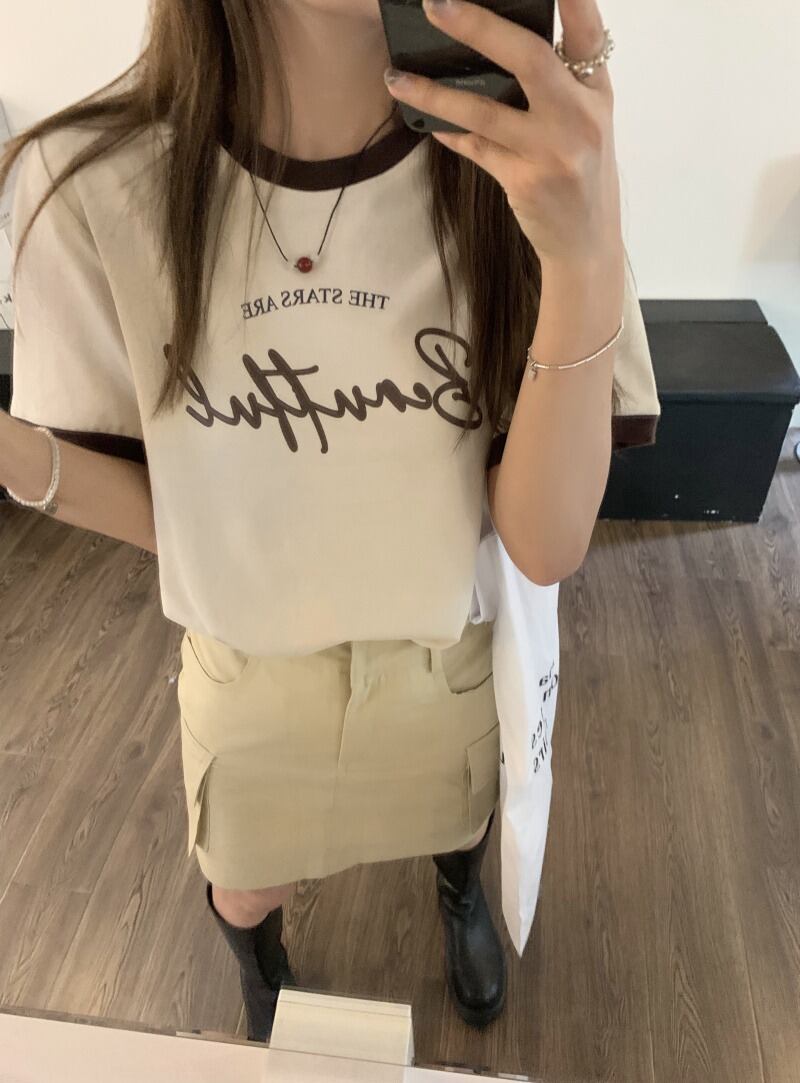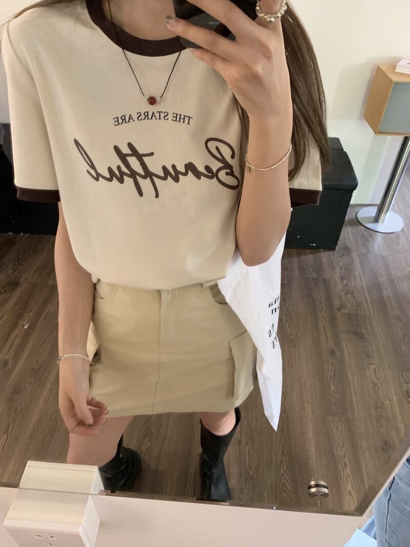 【韓国通販 dgo】2colors レタープリントT レッド/ブラウン(W2914)