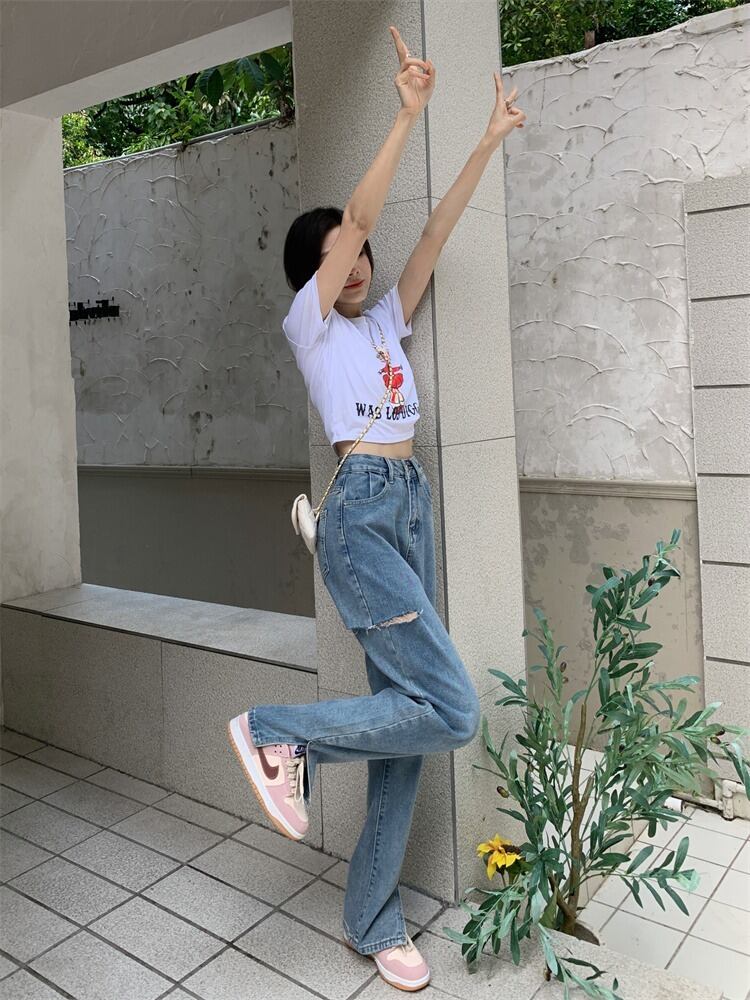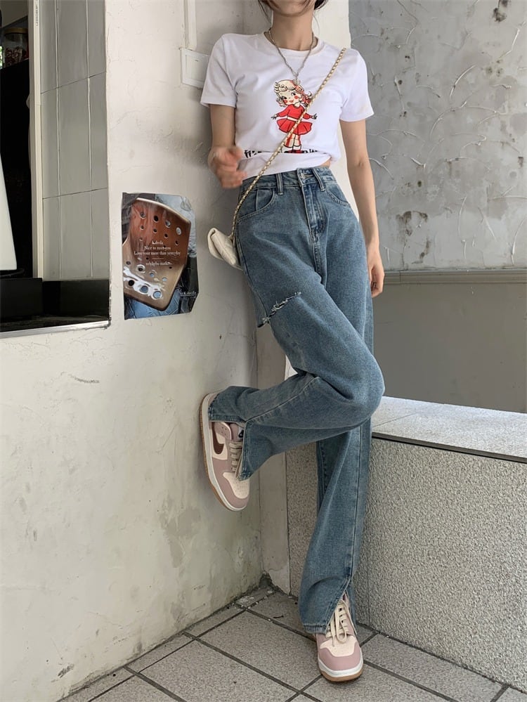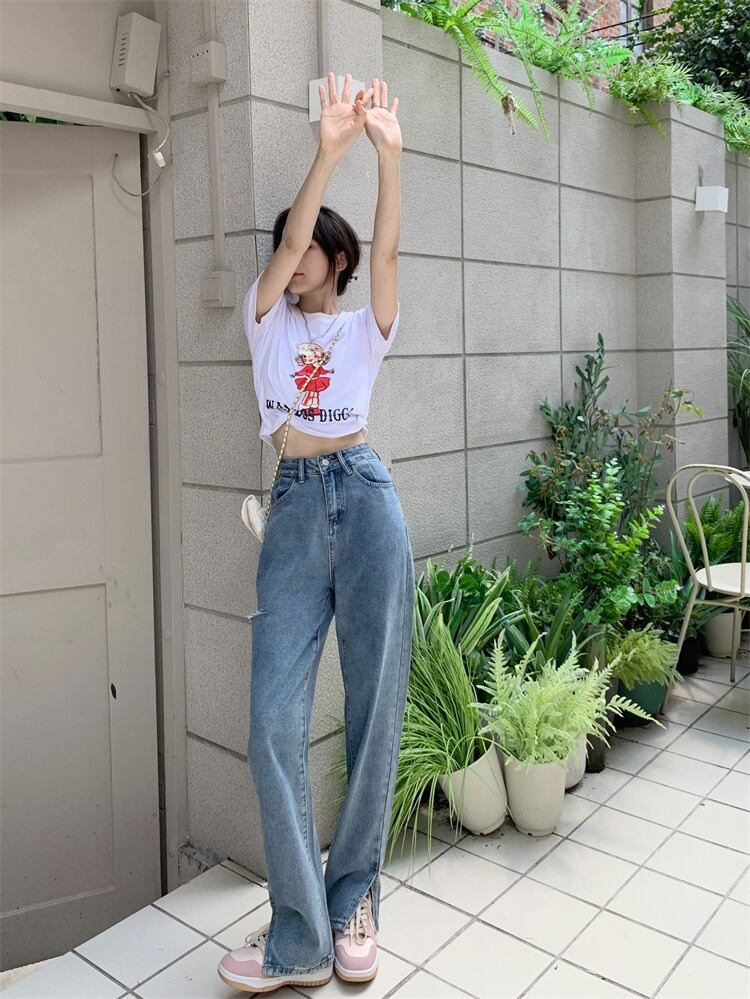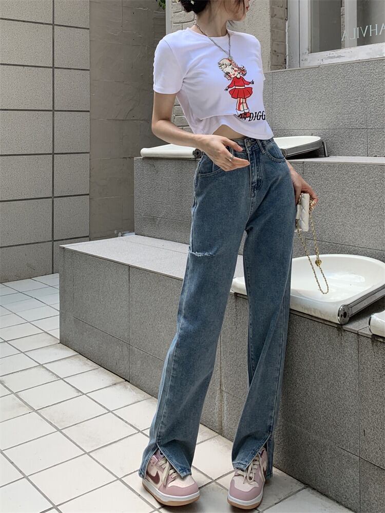 【韓国通販 dgo】ハイウエストスプリットストレートジーンズ ブルー(W2913)センス溢れるファッションitem
