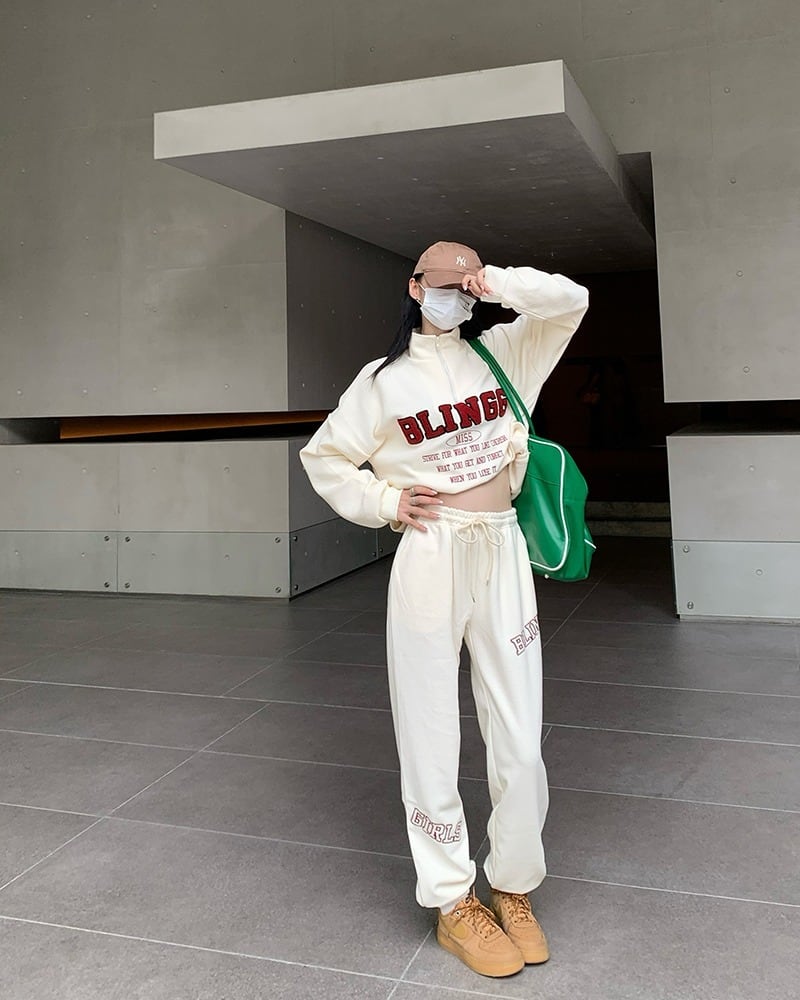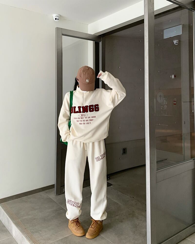 【韓国通販 dgo】2colors アルファベットロゴスウェット&パンツ アイボリー/ブラック(W3009)トレンドアイテム