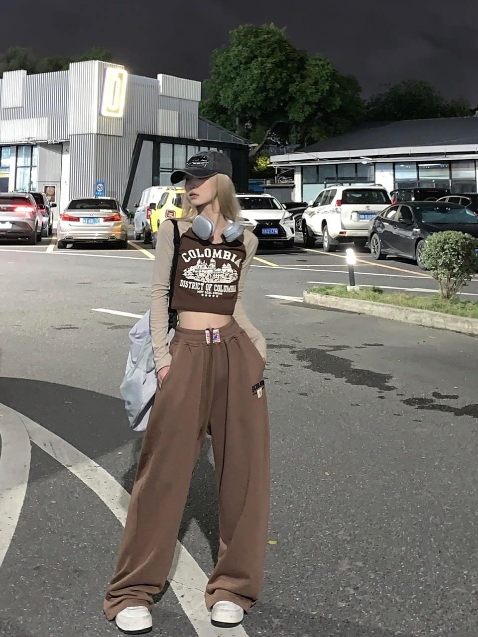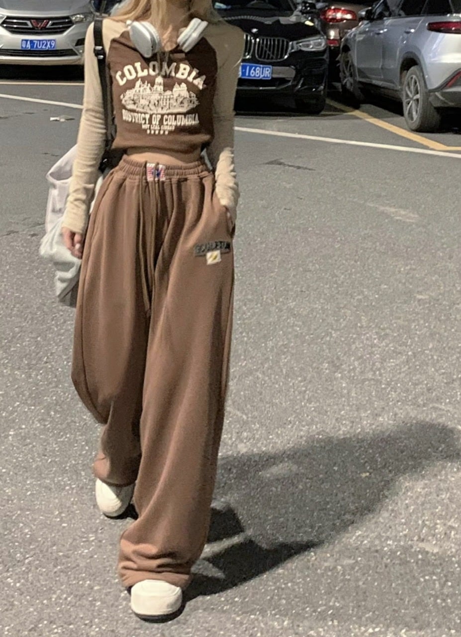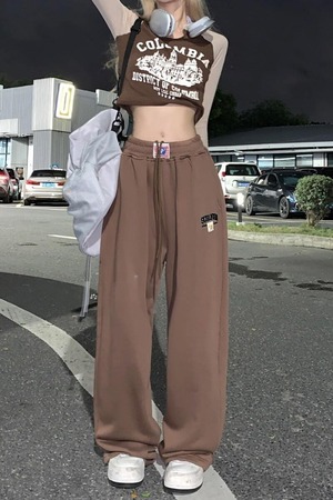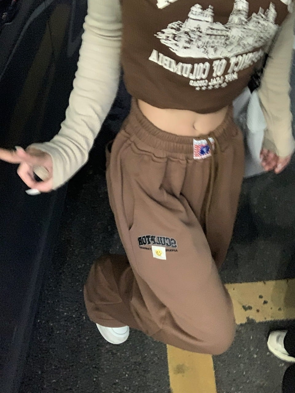 【韓国通販 dgo】2colors ハイウエストスウェットパンツ ブラウン/アーミーグリーン(W3007)トレンドアイテム