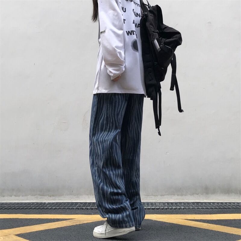 【韓国通販 dgo】2colors ユニセックス ゼブラ柄ストレートジーンズ ブルー/ブラック(M3005)センス溢れるファッションitem