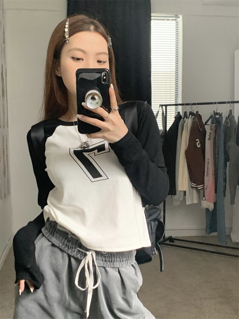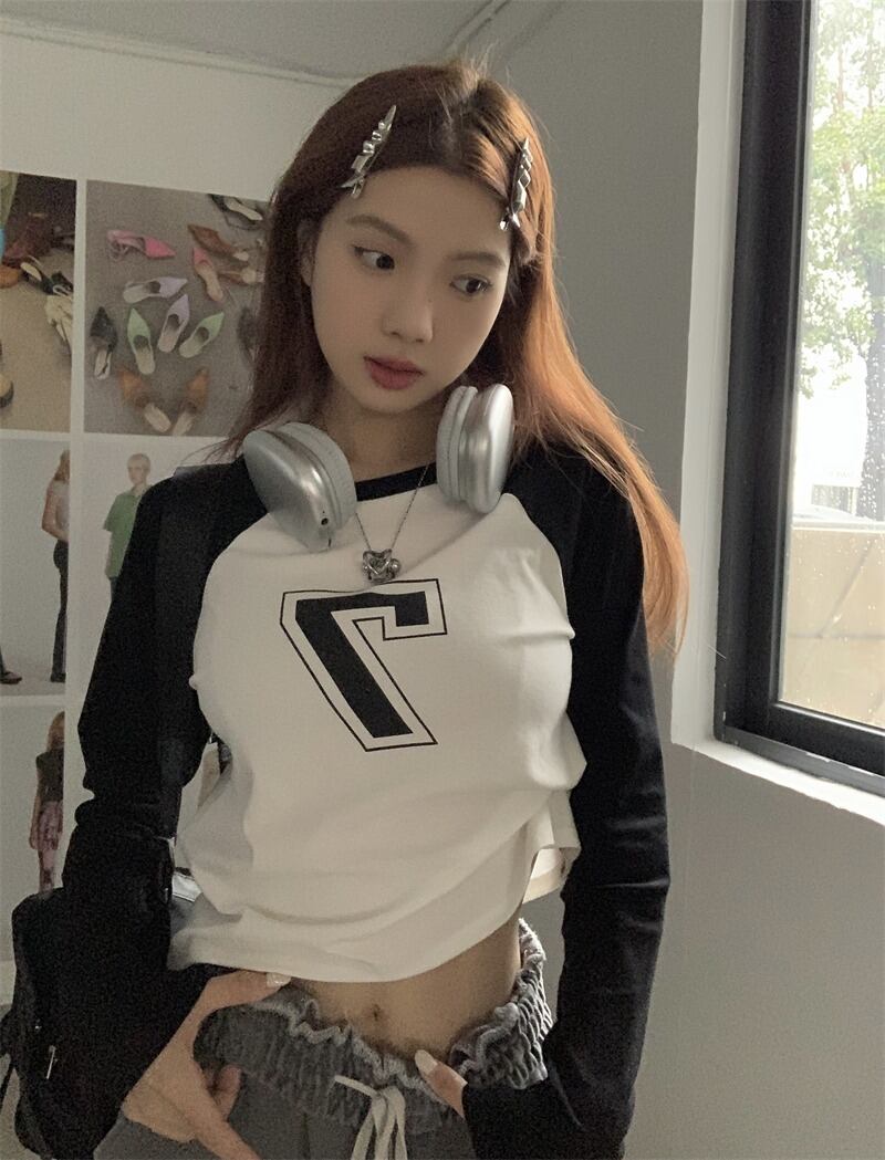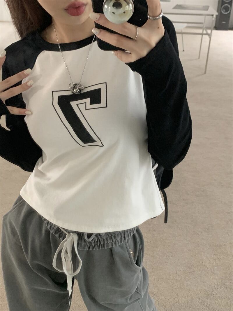【韓国通販 dgo】2colors ラグランスリーブナンバーロゴプリントロンT ブラウン/ブラック(W3002)