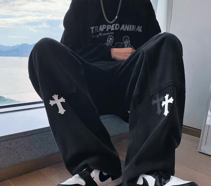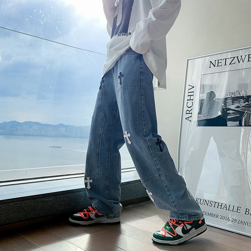 【韓国通販 dgo】2colors 刺しゅうステッチジーンズ ライトブルー/ブラック(M3001)