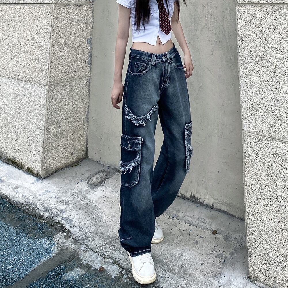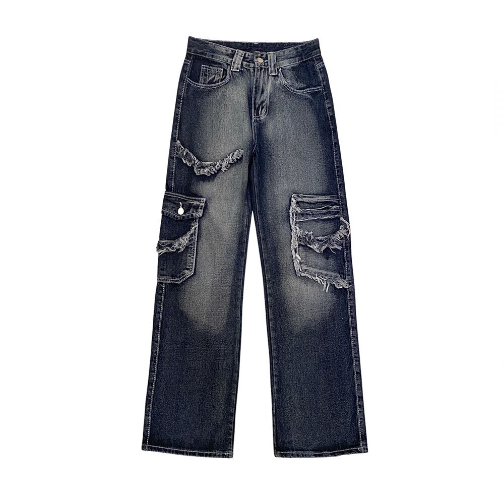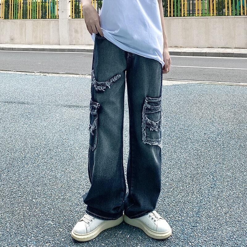 【韓国通販 dgo】ユニセックス ストレートダメージ加工ジーンズ ブルー(M2996)センス溢れるファッションitem