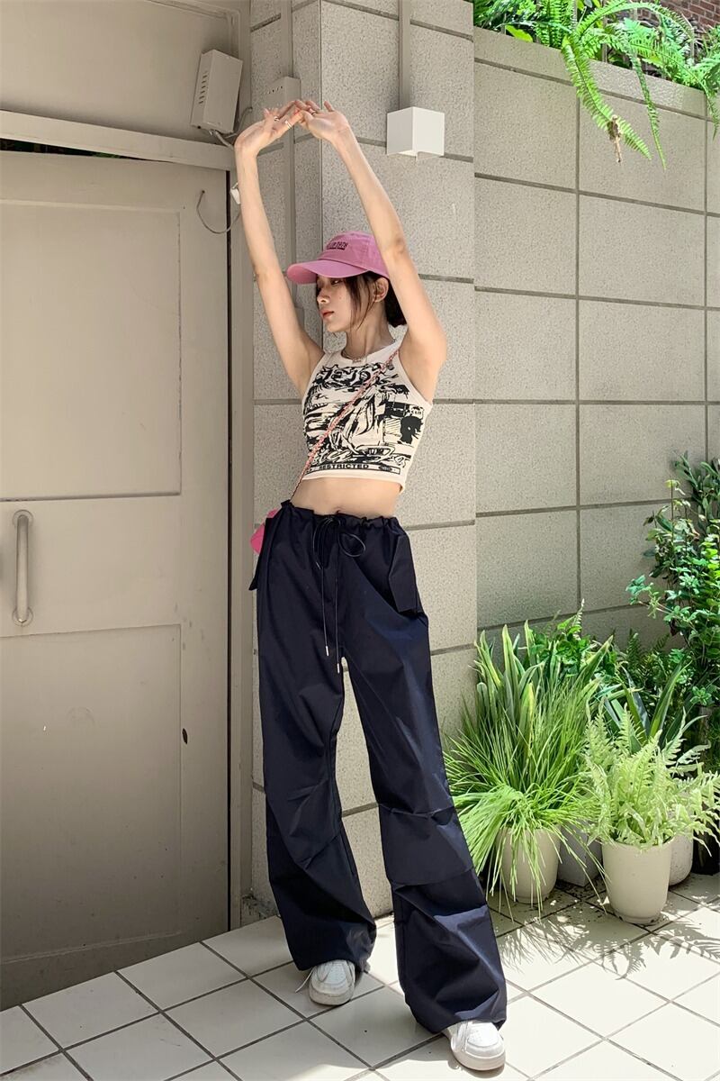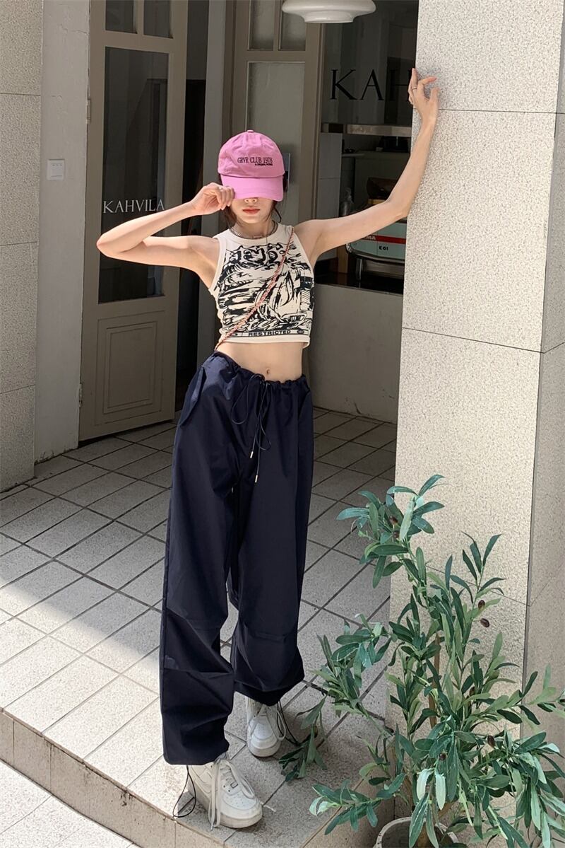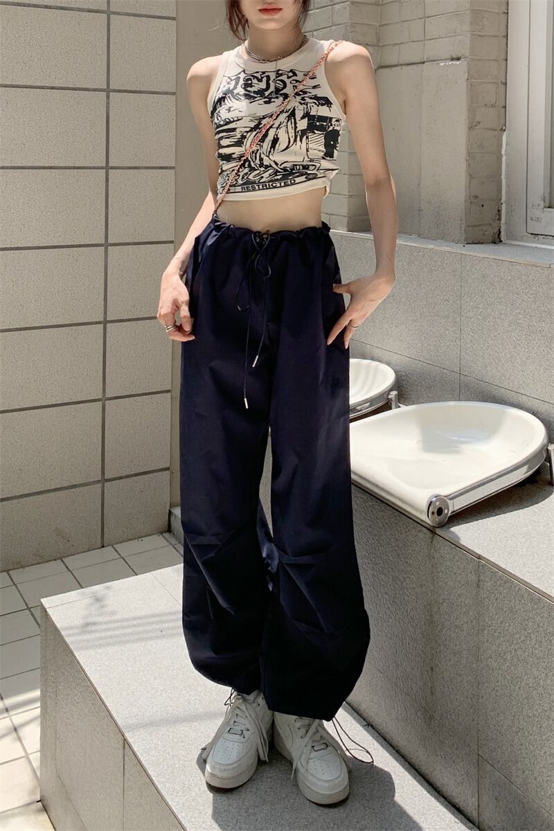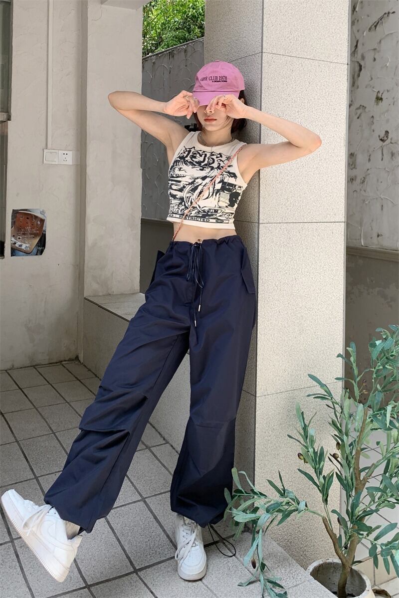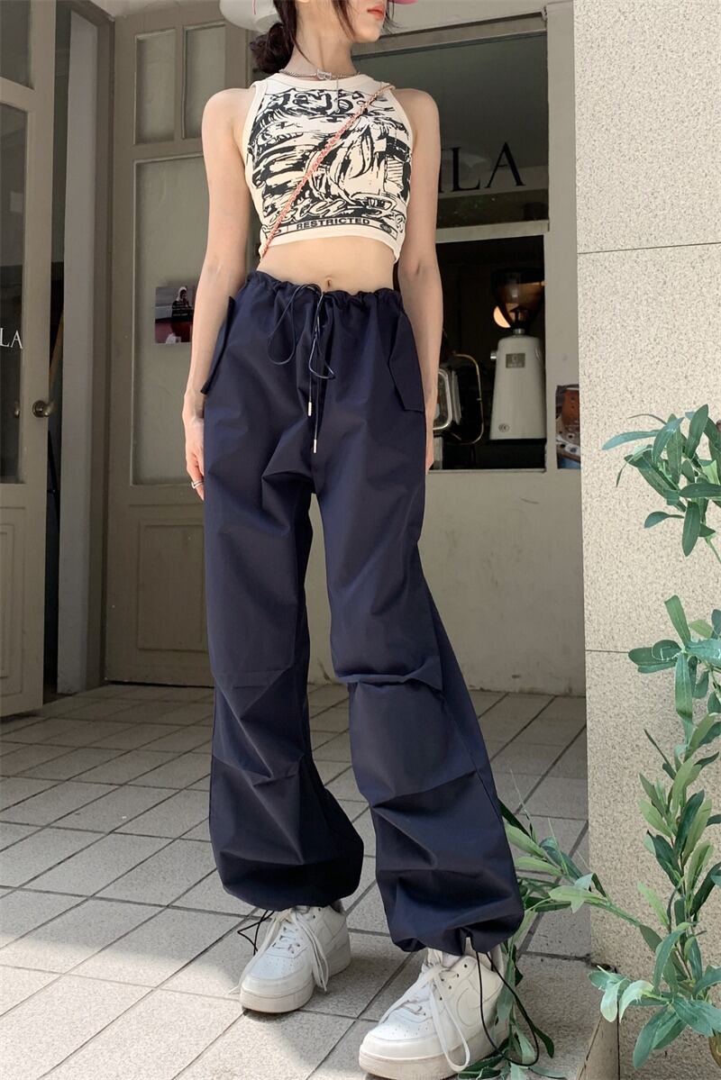 【韓国通販 dgo】ハイウエストワイドレッグワークパンツ ブルー(W2984)