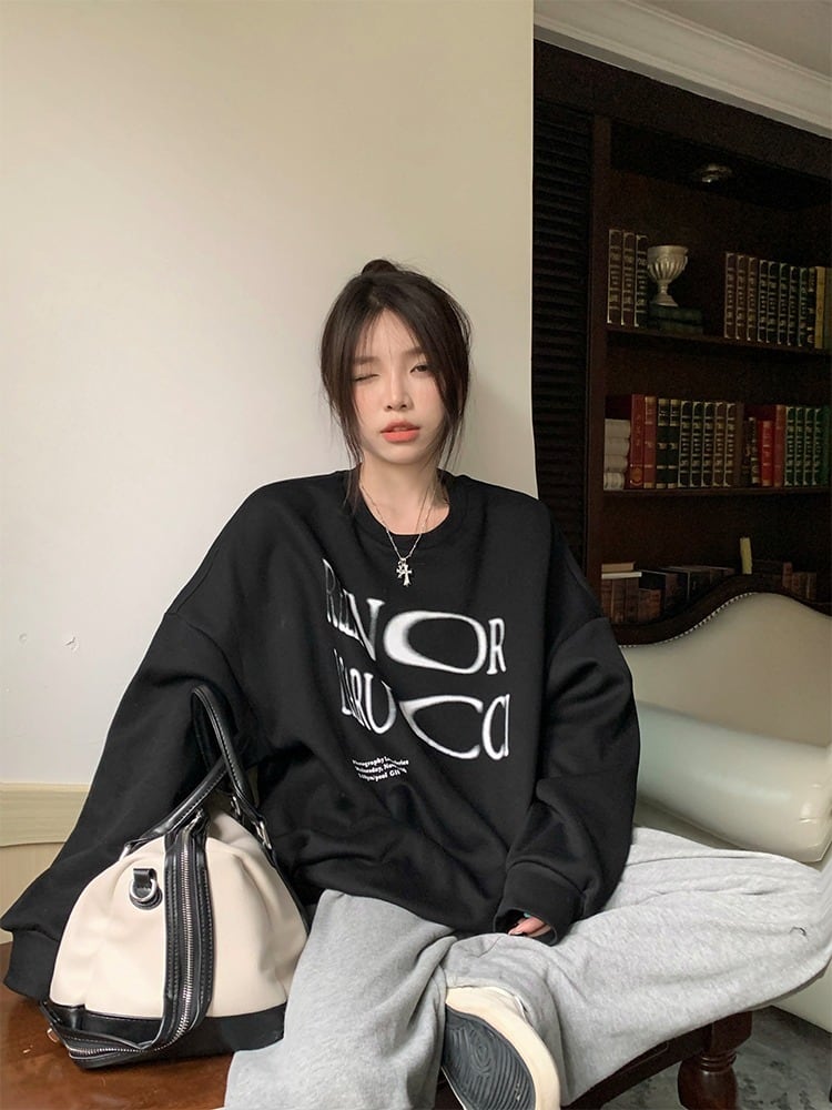 【韓国通販 dgo】2colors アルファベットロゴスウェット ホワイト/ブラック(W2969)トレンドアイテム