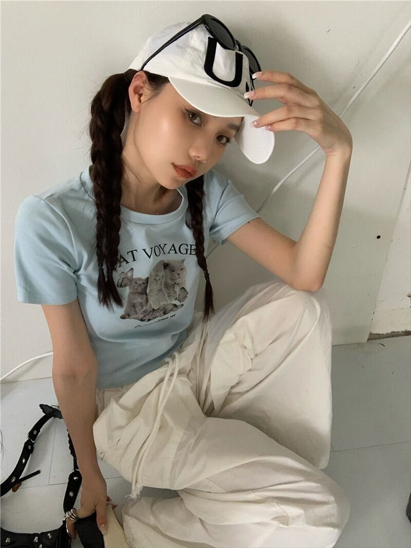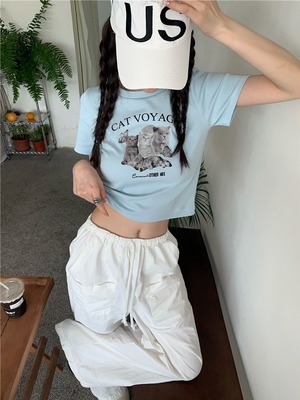 【韓国通販 dgo】クロップドアニマルプリントT ブルー(W2963)センス溢れるファッションitem