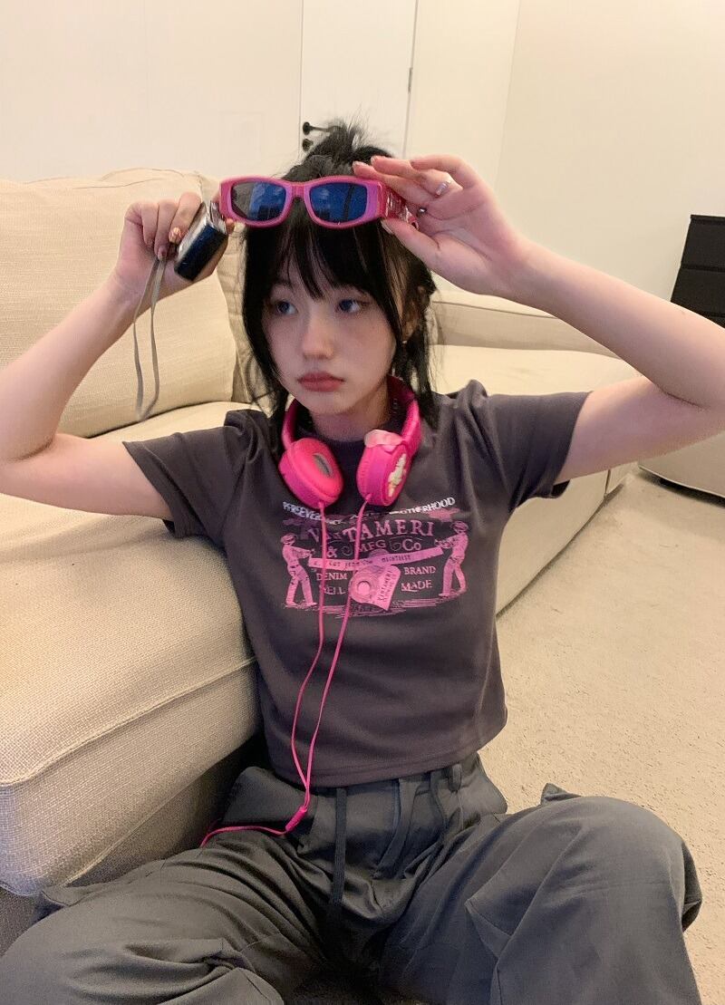 【韓国通販 dgo】2colors プリントクロップドT ホワイト/ダークグレー(W2947)センス溢れるファッションitem
