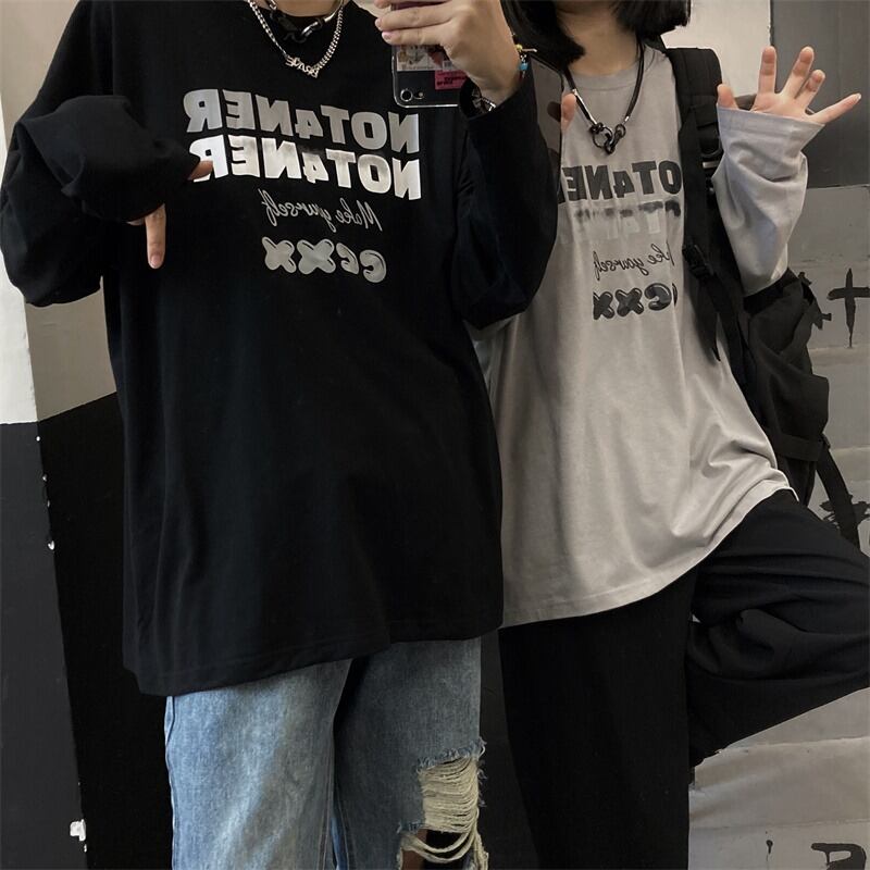 【韓国通販 dgo】2colors ユニセックス プリントカップルTシャツ グレー/ブラック(W3084)