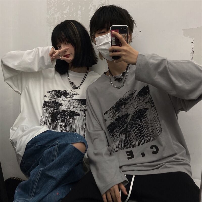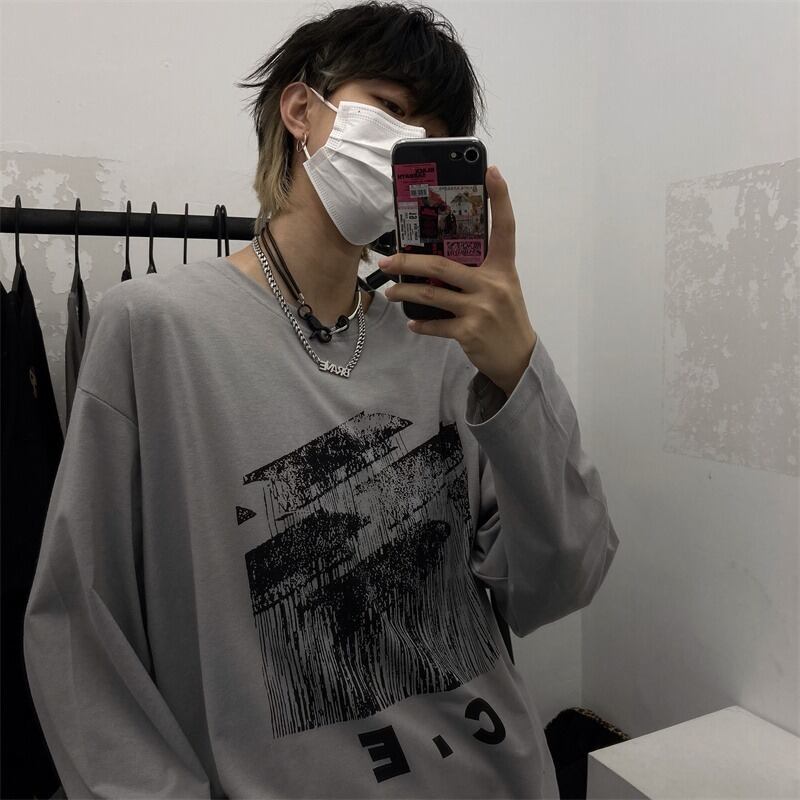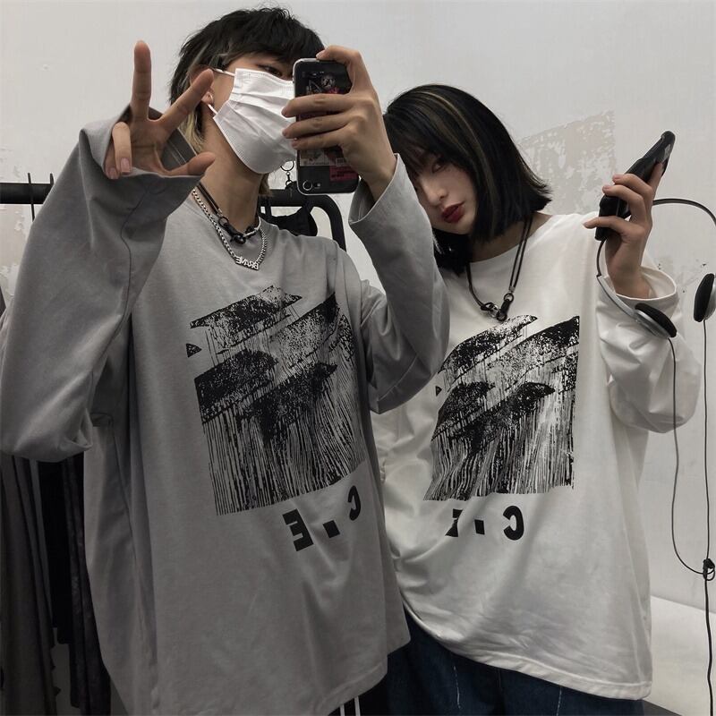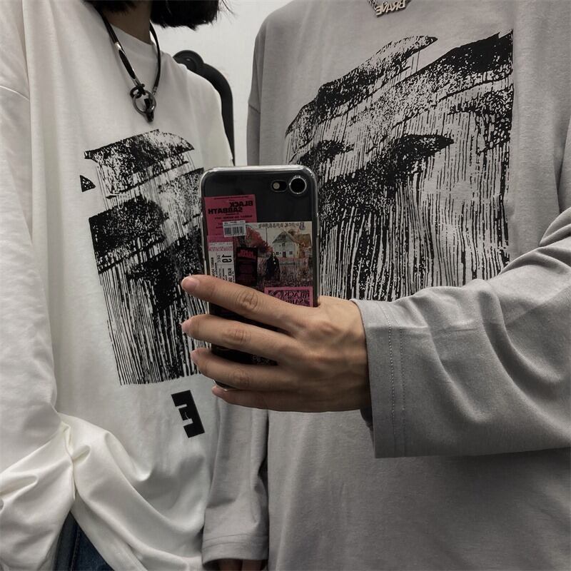 【韓国通販 dgo】2colors ユニセックス アブストラクトプリントロンT グレー/ホワイト(W3082)センス溢れるファッションitem