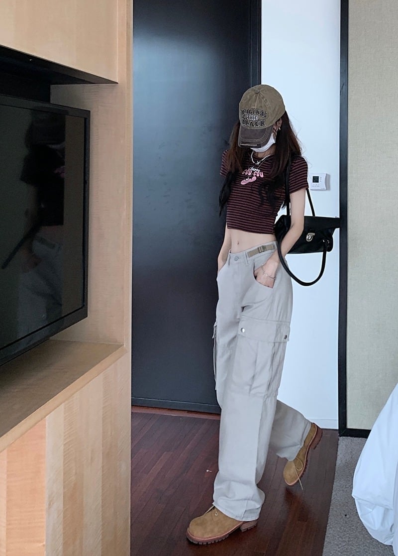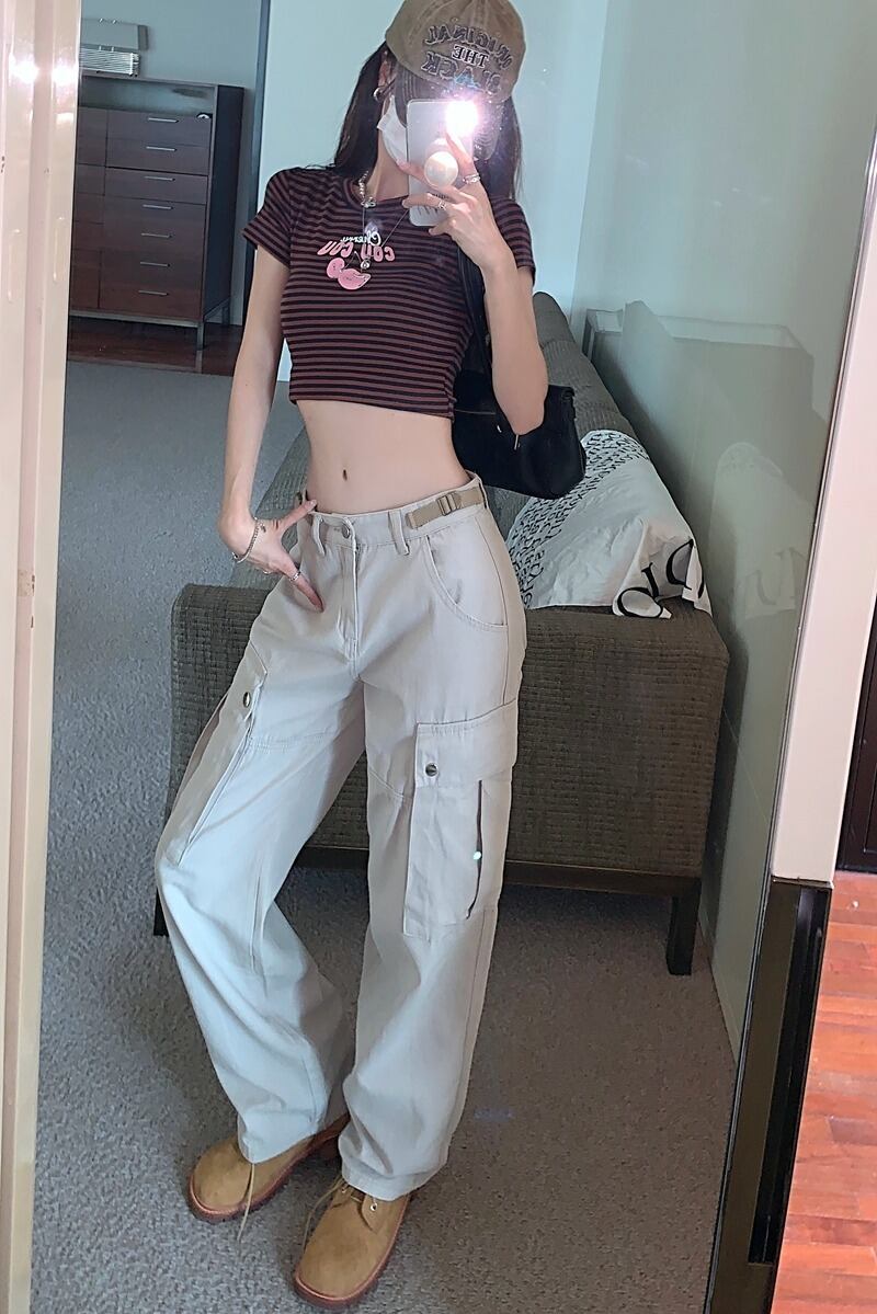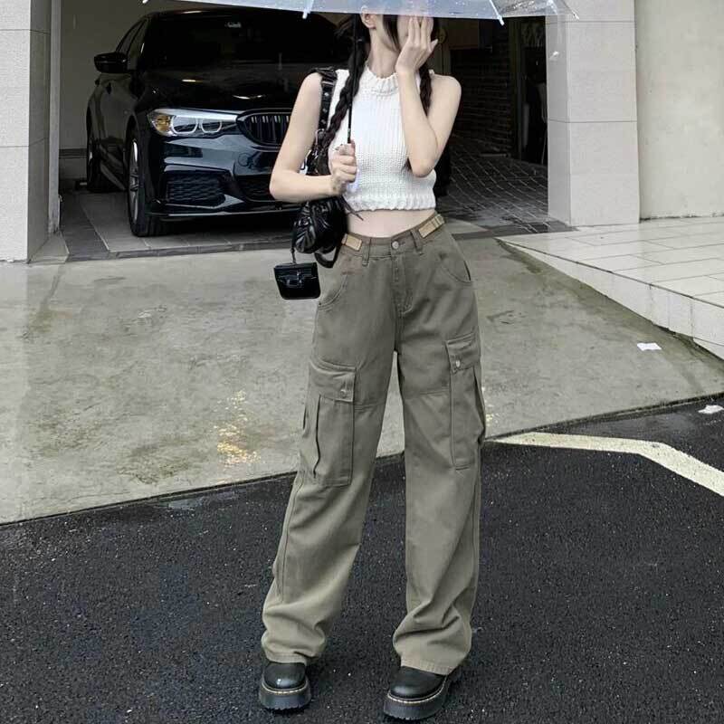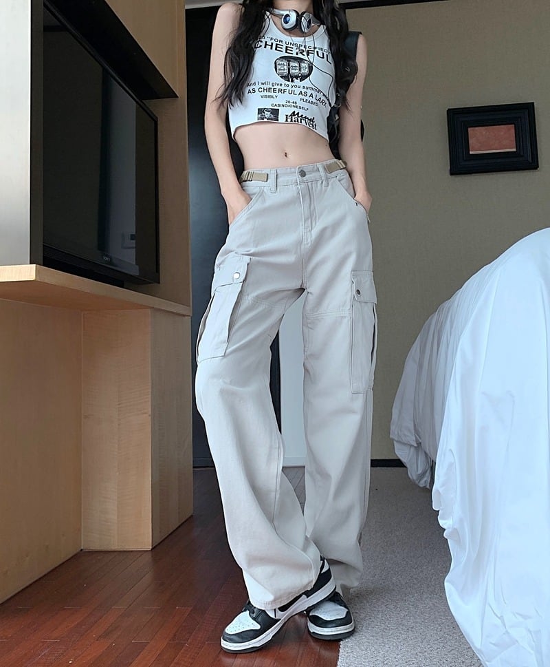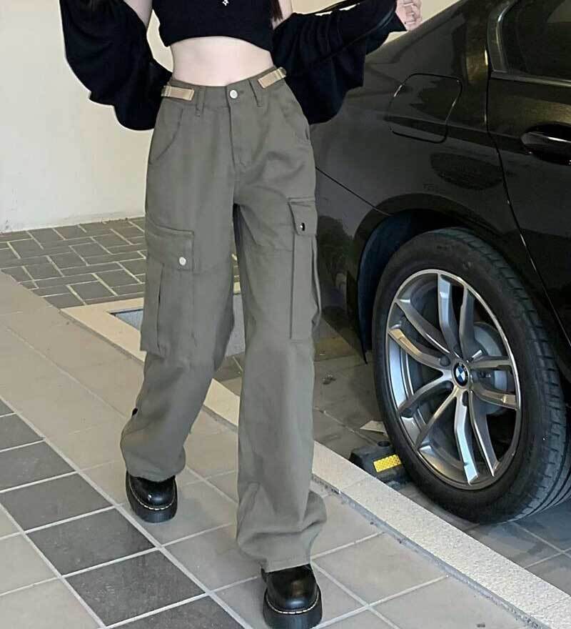 【韓国通販 dgo】2colors ストレートカーゴパンツ グレーグリーン/アイボリー(W3077)トレンドアイテム