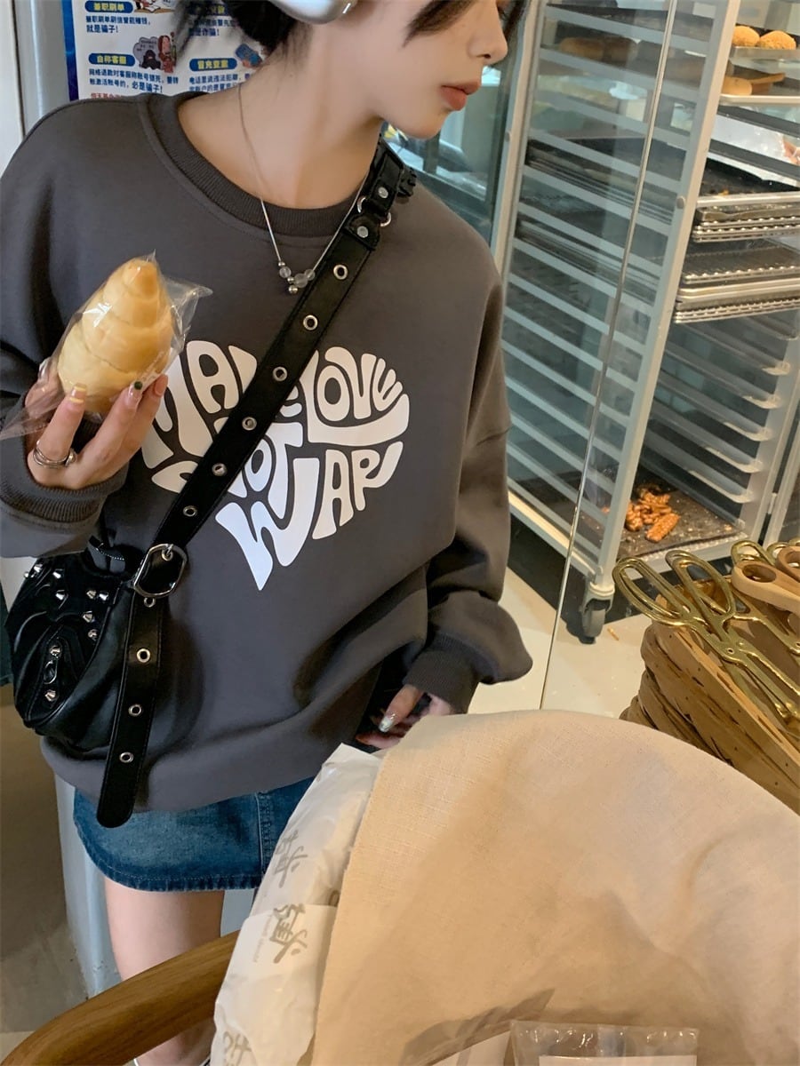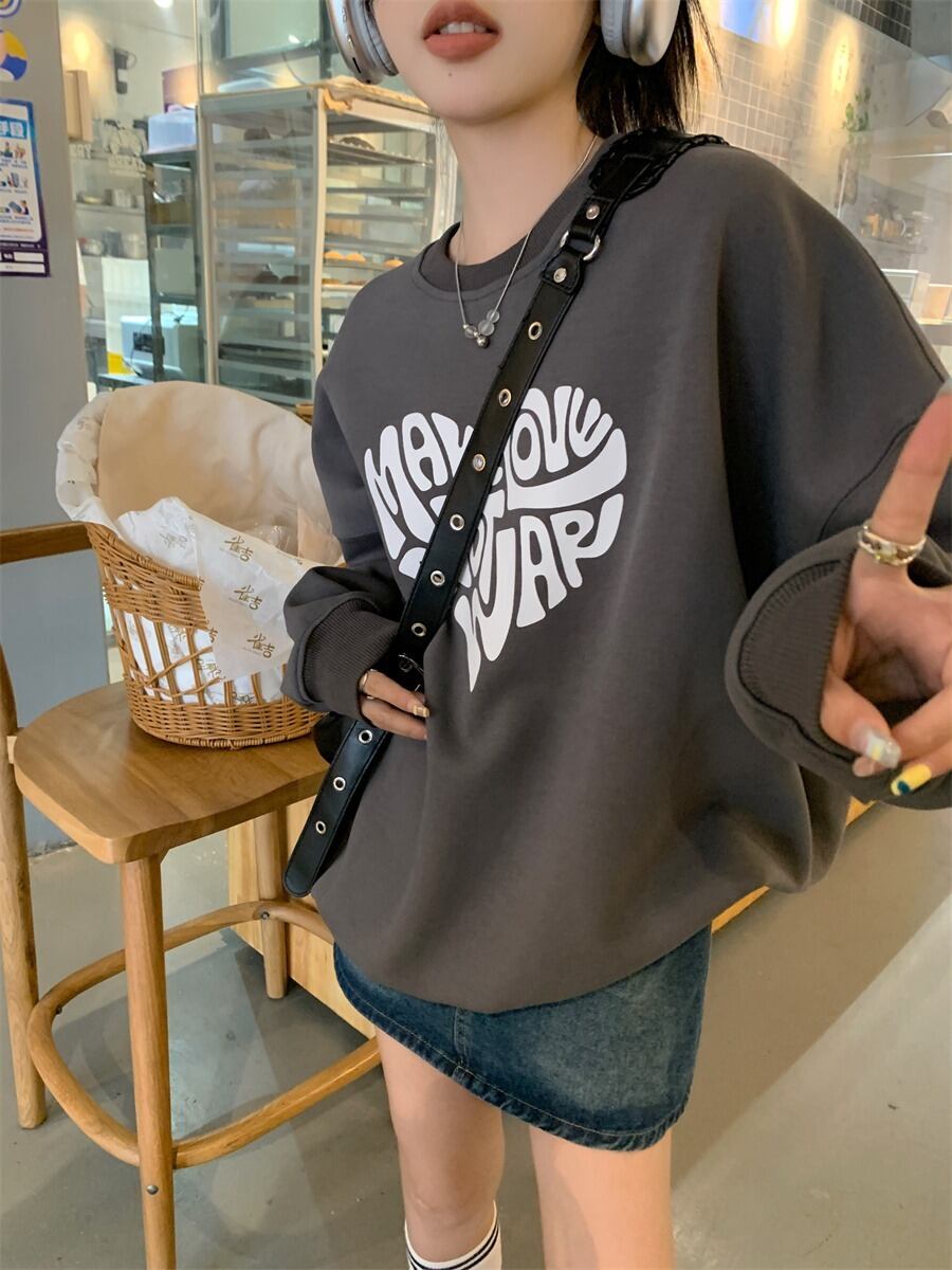 【韓国通販 dgo】2colors 英ハートロゴプリントスウェット ダークグレー/アイボリー(W3057)トレンドアイテム
