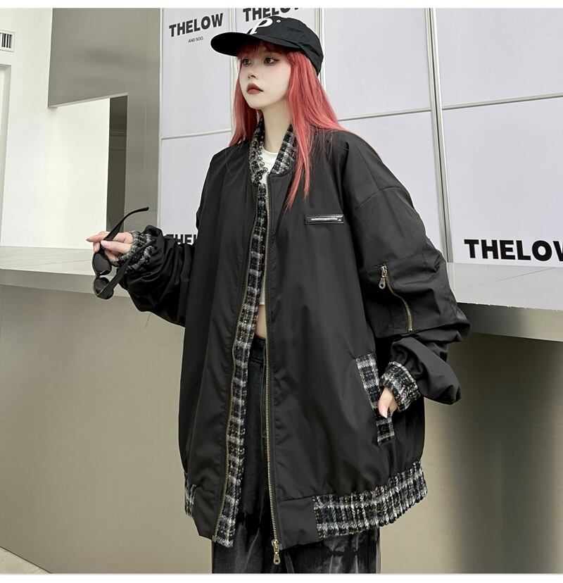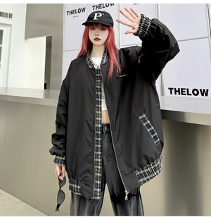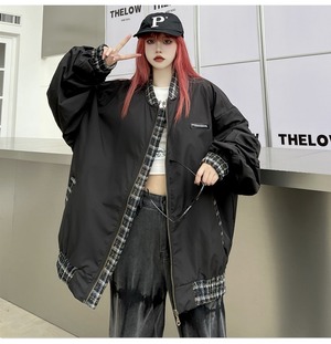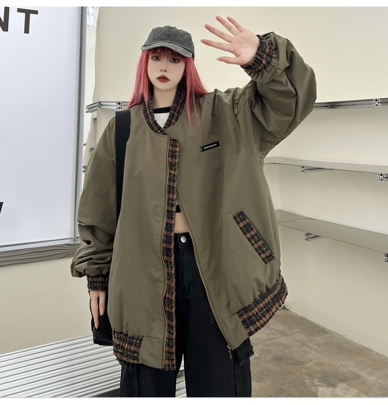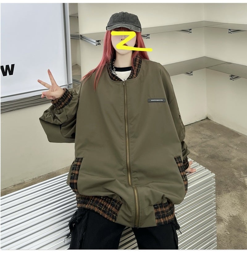 【韓国通販 dgo】2colors ユニセックス チェック柄ステッチブルゾン アーミーグリーン/ブラック(M3050)トレンドアイテム