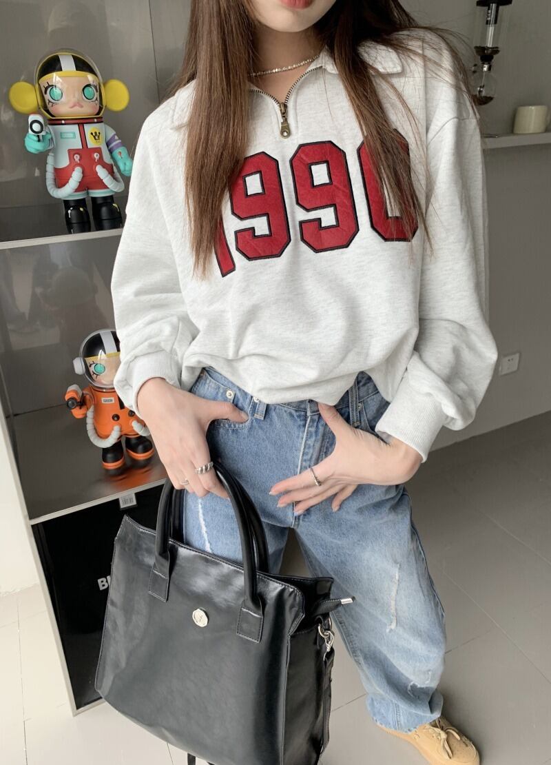 【韓国通販 dgo】2colors ナンバーロゴハーフジップスウェット 秋冬新作 ホワイトグレー/グレー ハーフジップでマンネリ脱出!(W3043)