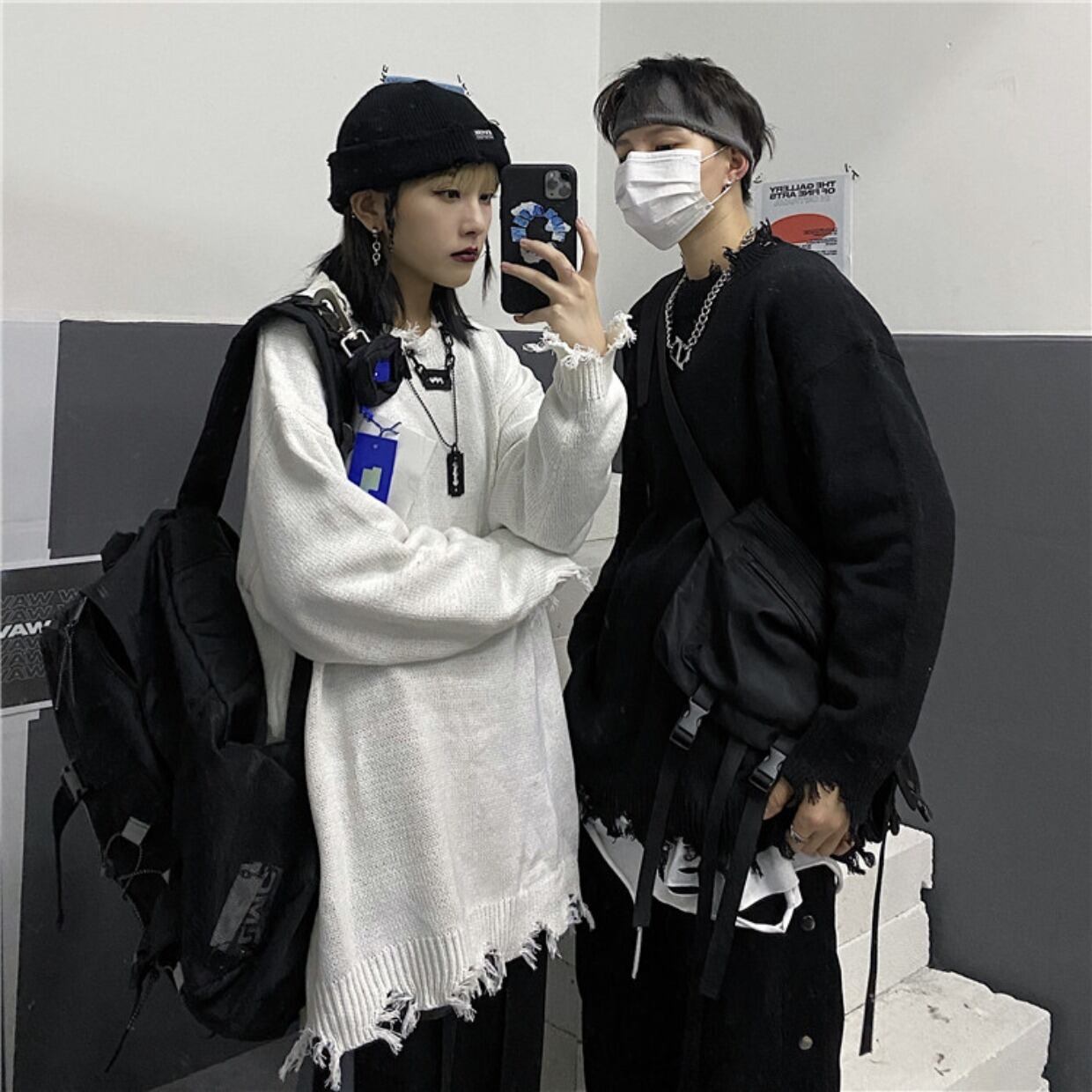 【韓国通販 dgo】2colors ユニセックス オーバーサイズルーズニット ブラック/ホワイト(M3041)センス溢れるファッションitem