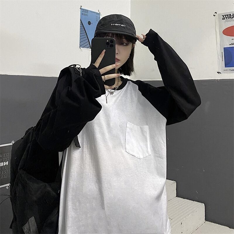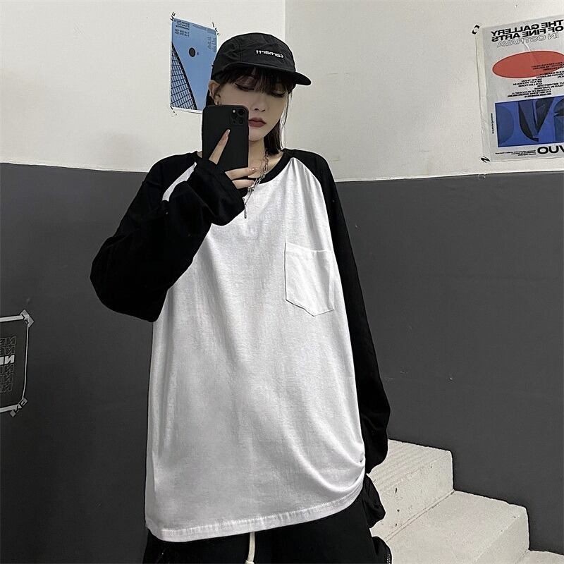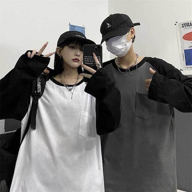 【韓国通販 dgo】2colors ユニセックス バイカラーカップルリンガーロンT ホワイト/ブラック/グレー(M3025)センス溢れるファッションitem
