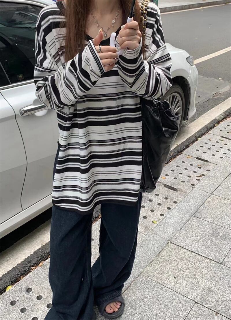 【韓国通販 dgo】ミドル丈ストライプ柄ロンT ホワイト&ブラック(W3023)センス溢れるファッションitem