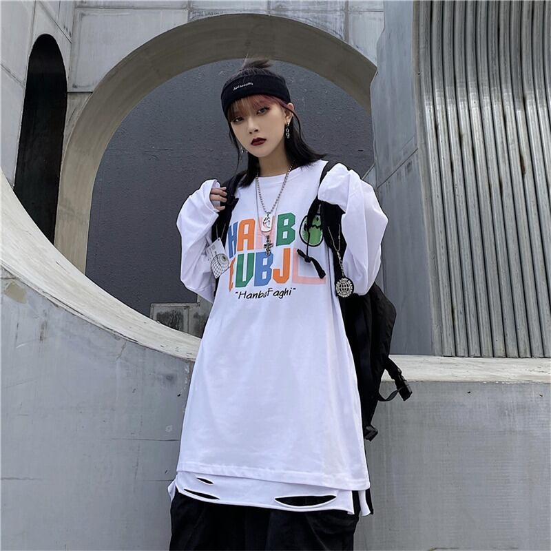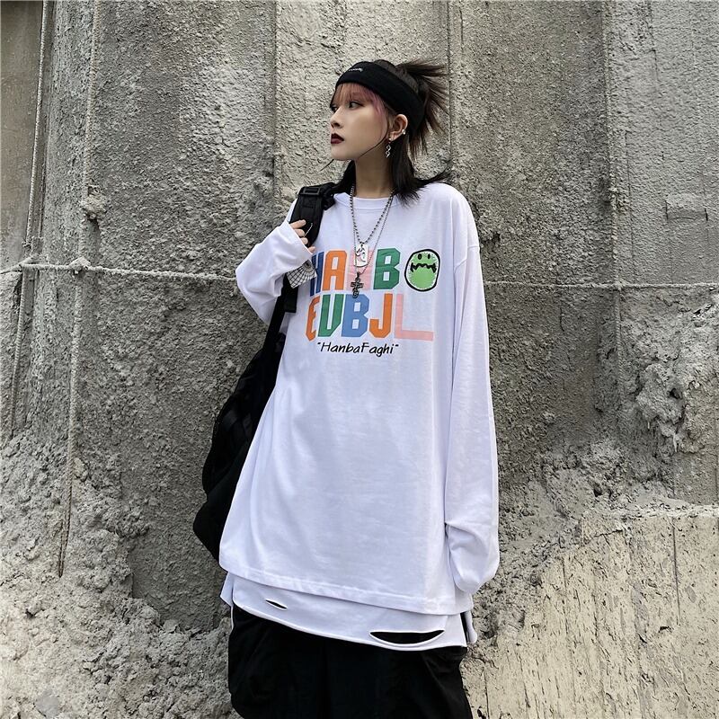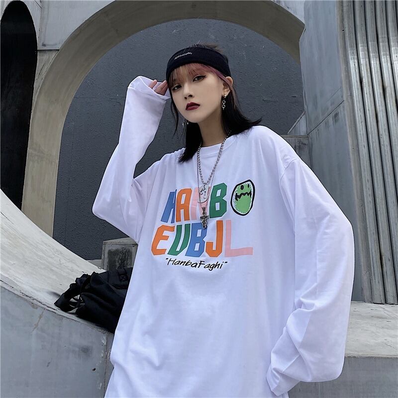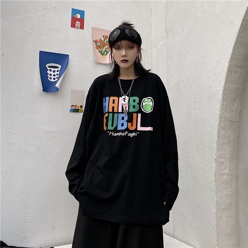 【韓国通販 dgo】2colors ユニセックスビックシルエットレタープリントロンT ブラック/ホワイト(M3020)トレンドアイテム
