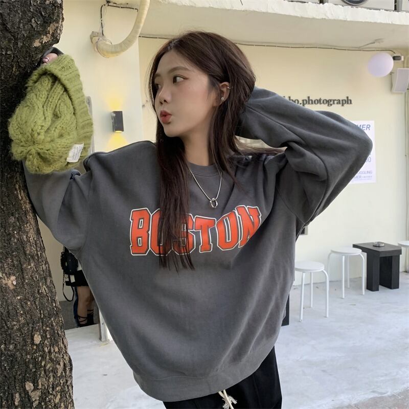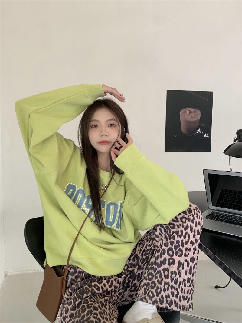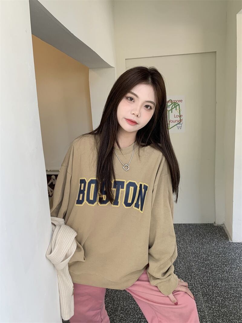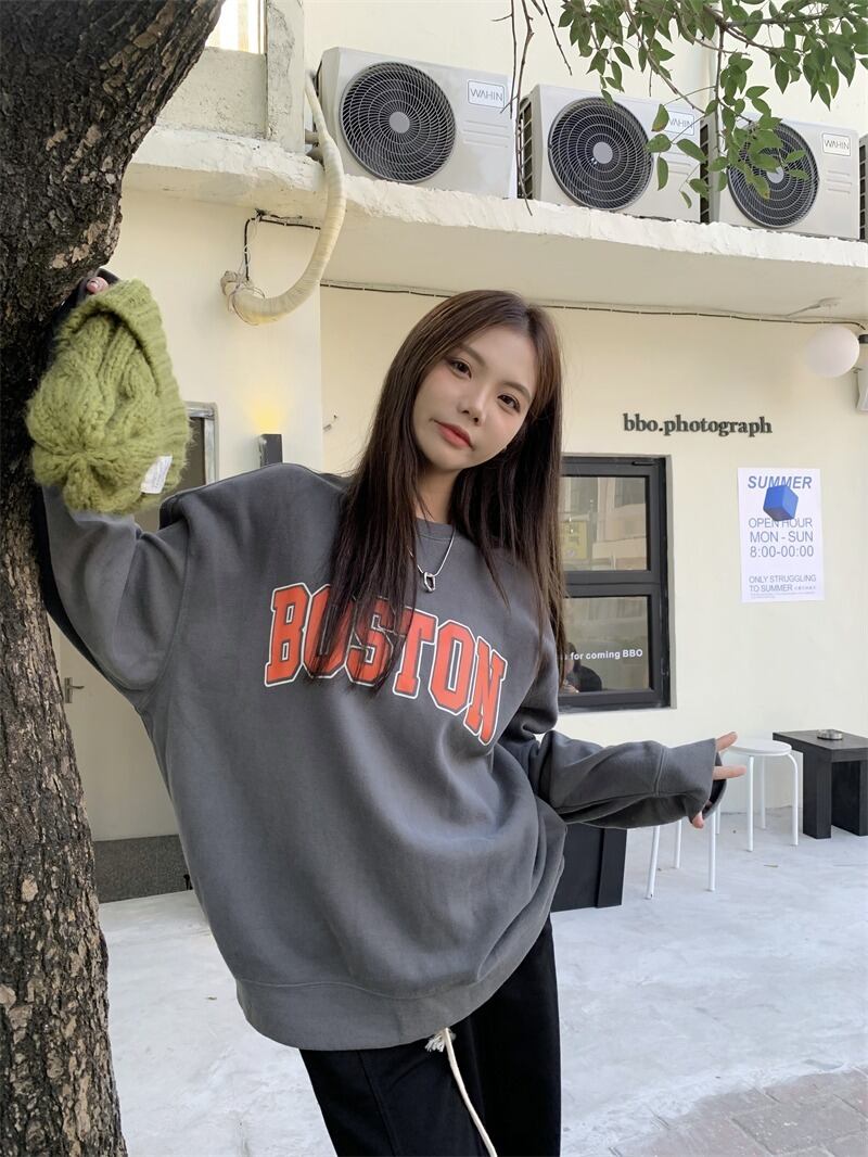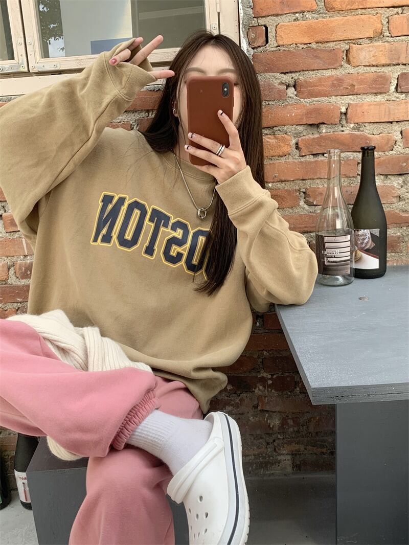 【韓国通販 dgo】4colors レタープリントプルオーバースウェット グリーン/カーキ/グレーブルー/ライトブルー(W3017)トレンドアイテム