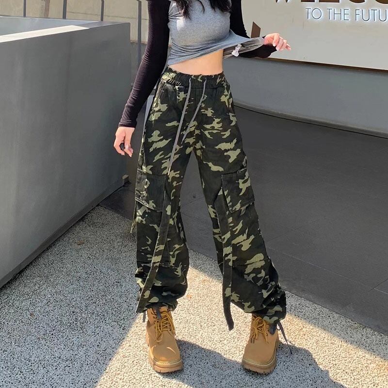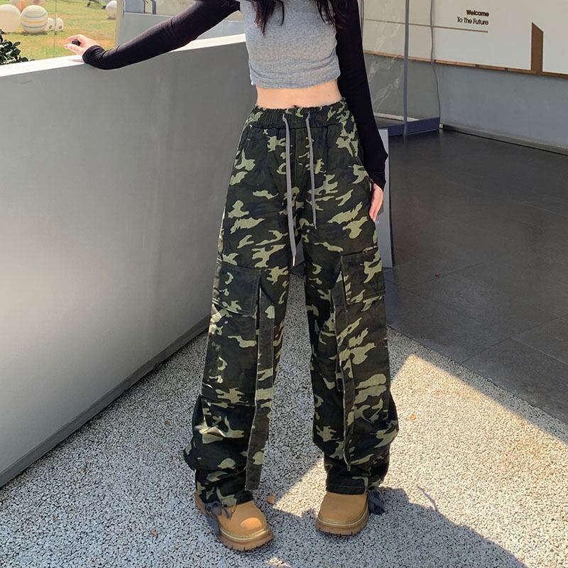 【韓国通販 dgo】ハイストリート ワイドレッグ カモフラージュパンツ(W3148)私らしい、旬のミリタリー