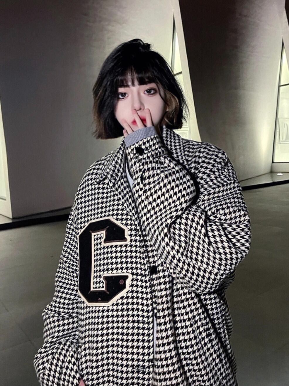 【韓国通販 dgo】ユニセックス 千鳥格子 ビッグロゴ ウールジャケット(W3147)気分はジャケット!