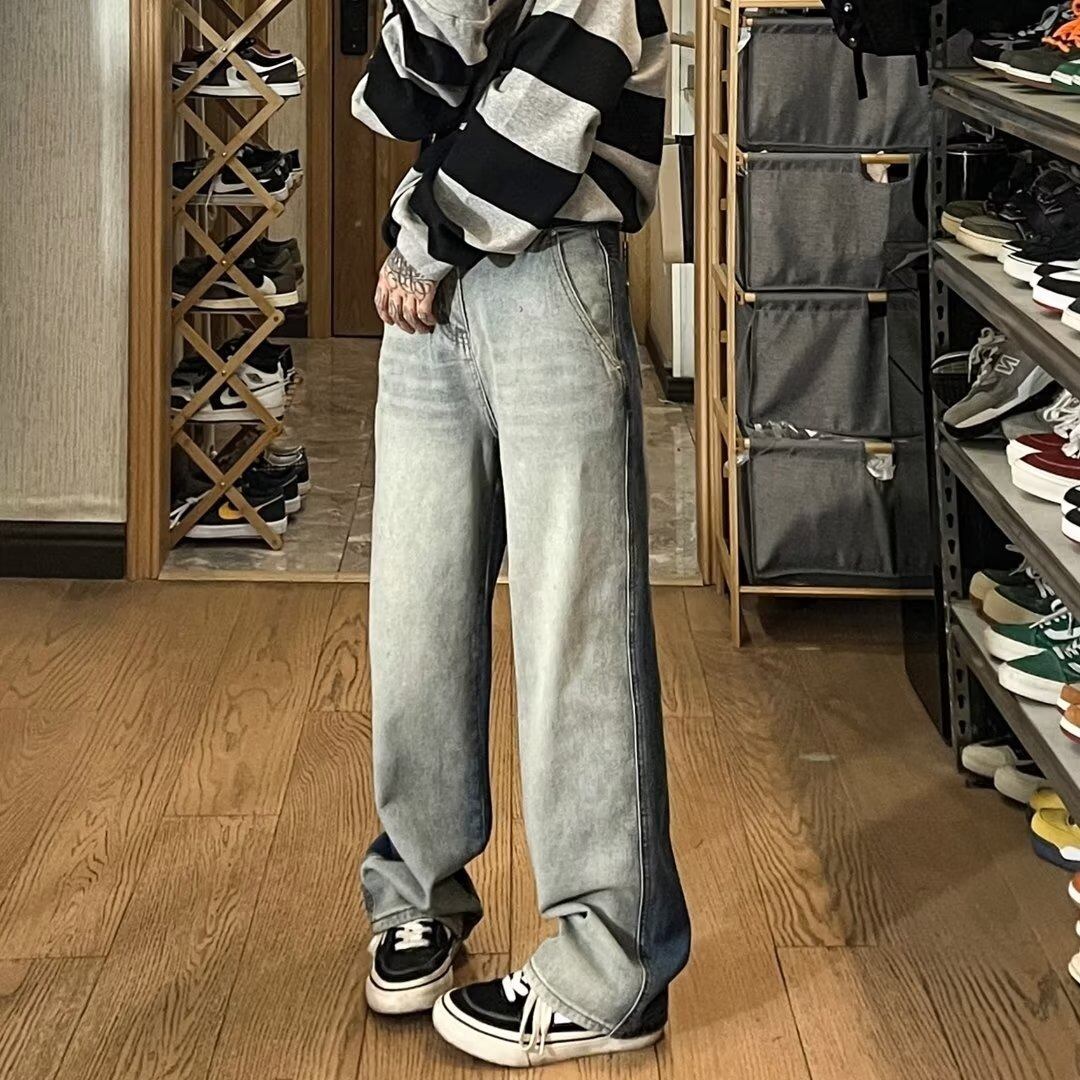 【韓国通販 dgo】ユニセックス ストリート バイカラー ジーンズ ブルー(M3136)センス溢れるファッションitem