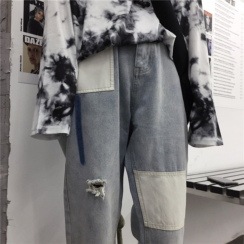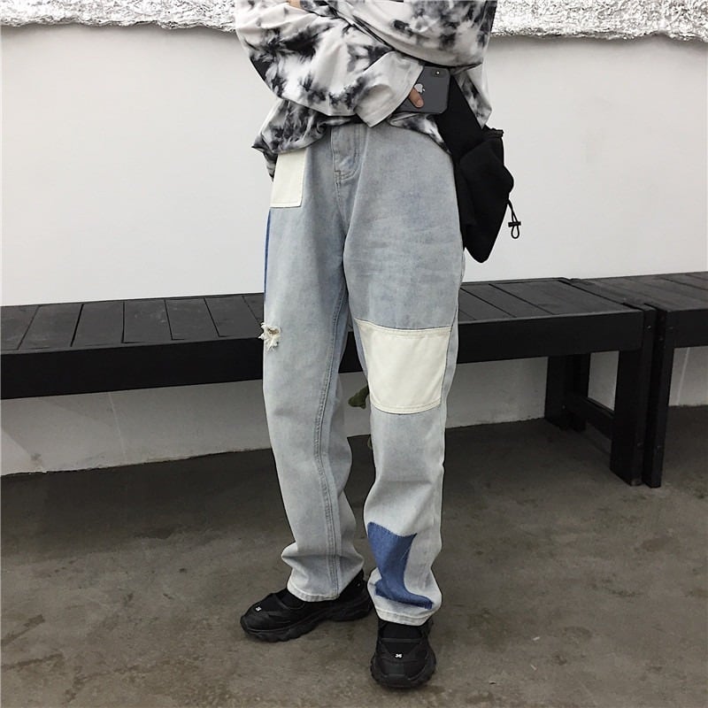 【韓国通販 dgo】パッチホール ストレートデニムジーンズ(M3130)トレンドアイテム