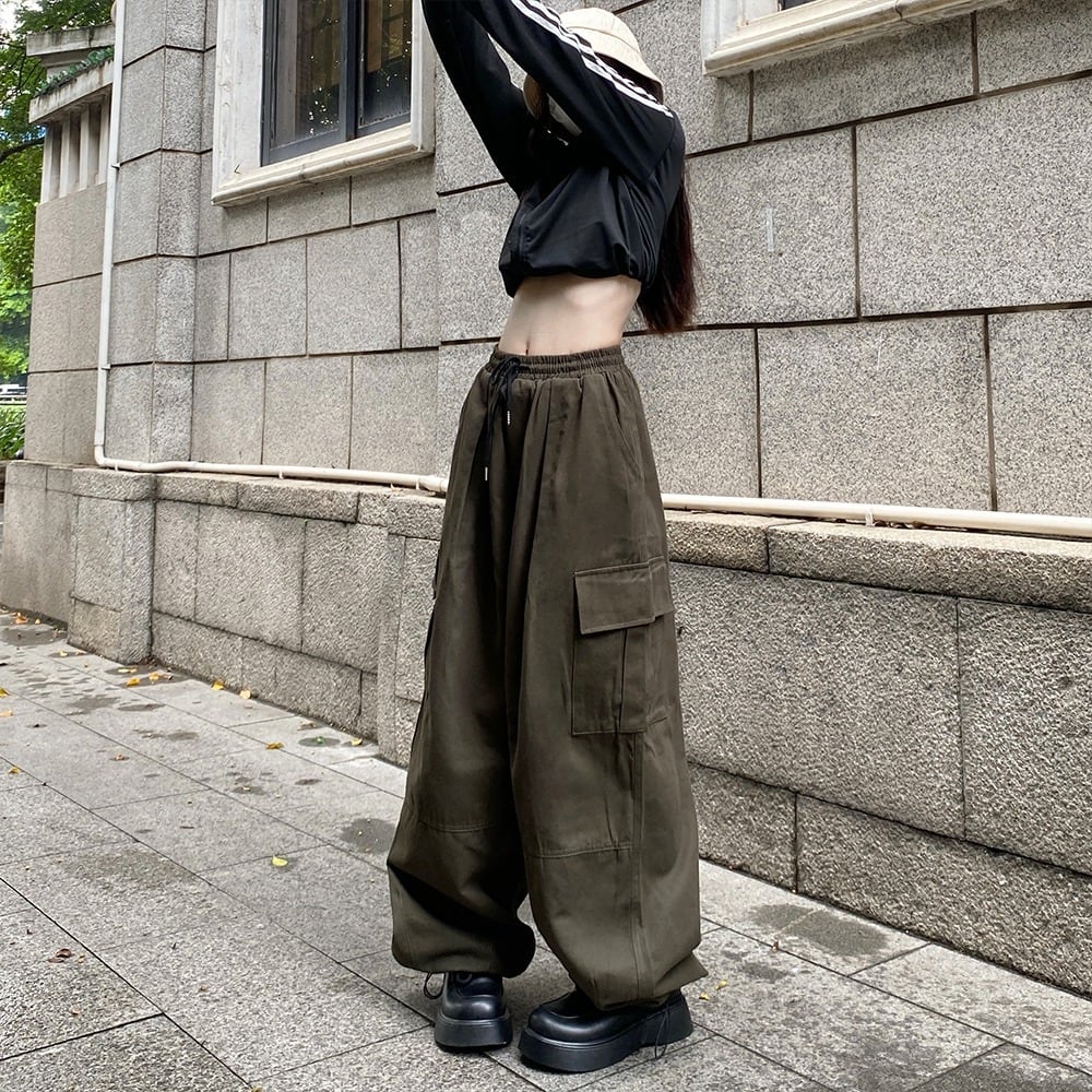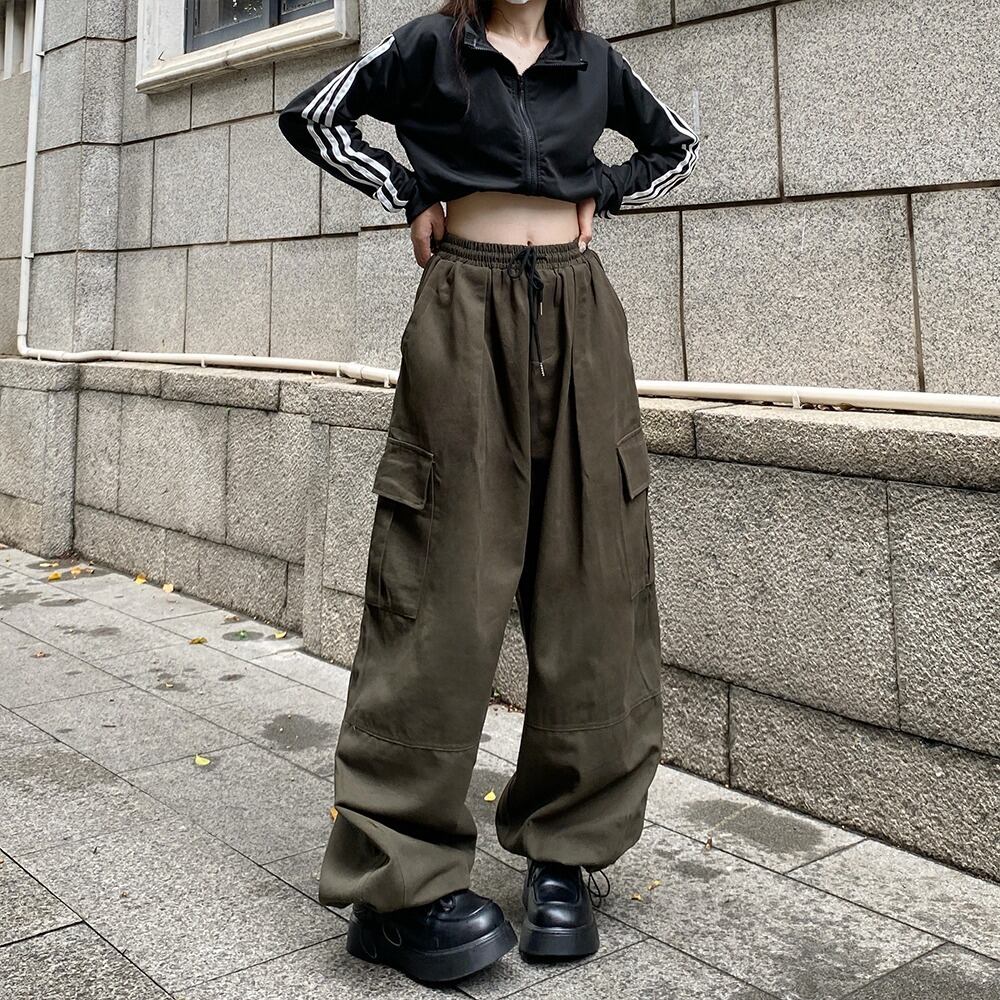 【韓国通販 dgo】3colors ワイドレッグ バルーンカーゴパンツ ブラック/アーミーグリーン/ライトブラウン(W3122)