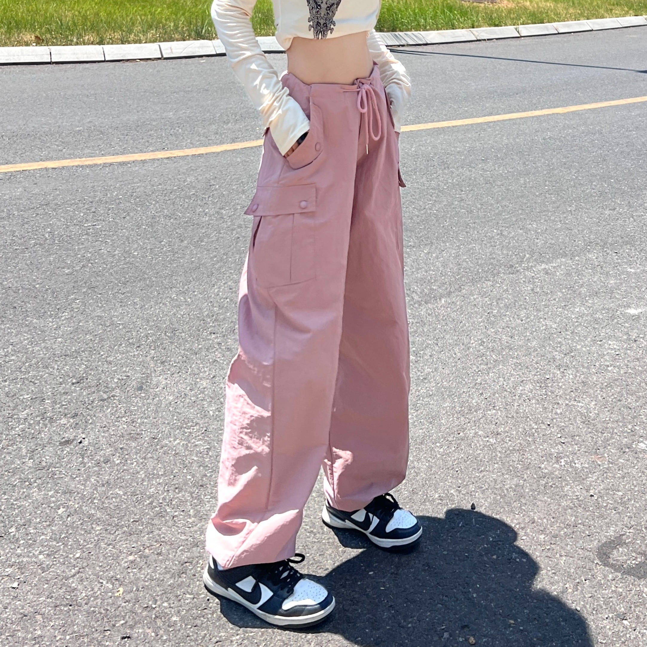 【韓国通販 dgo】ハイウエスト ピンク カーゴパンツ(W3114)