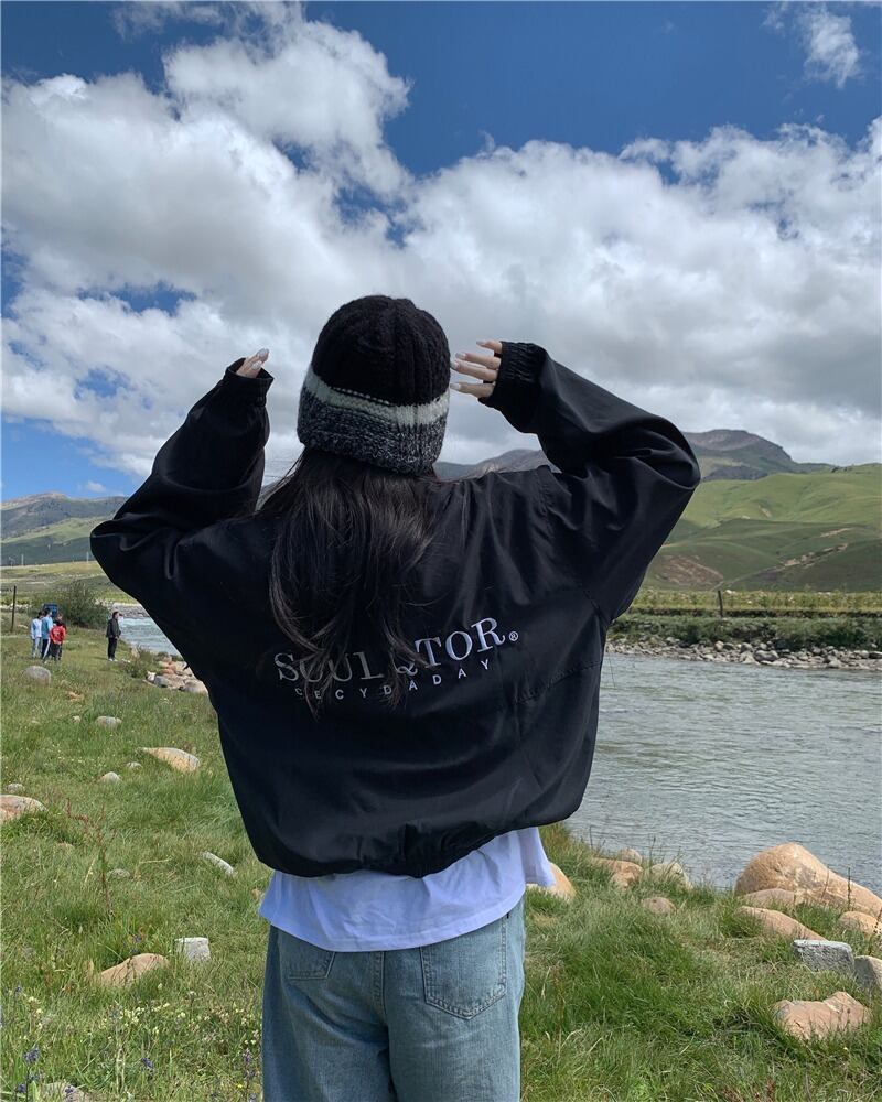 【韓国通販 dgo】2colors バックレタープリント ジャケット グレーグリーン/ブラック(W3098)気分はジャケット!