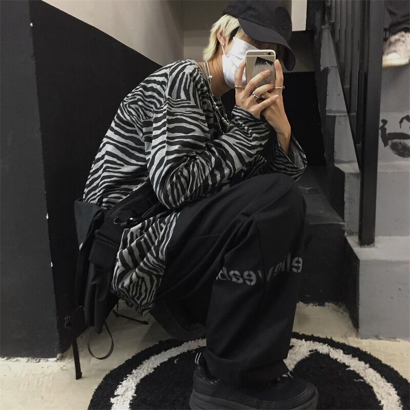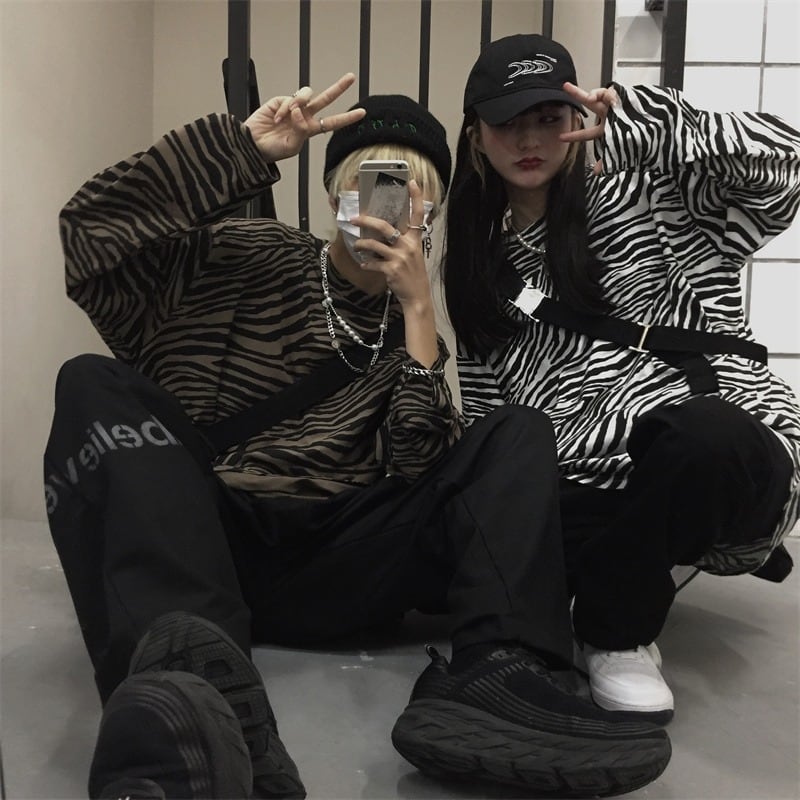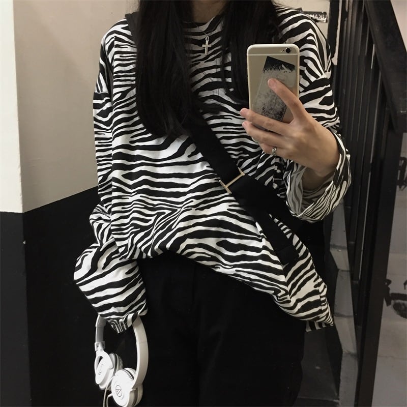 【韓国通販 dgo】3colors ゼブラ柄 カップル オーバーサイズ ロンT グレー/ホワイト/ブラウン(W3088)