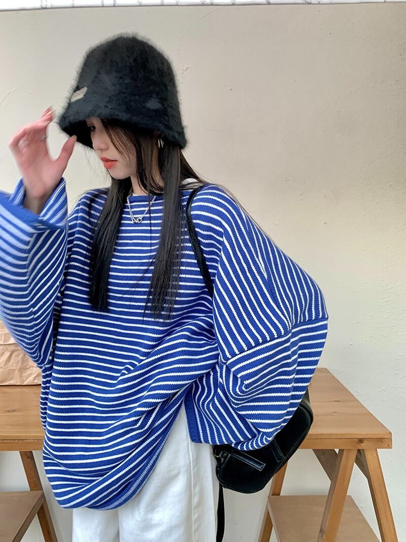 【韓国通販 dgo】2colors プルオーバー ストライプ トップス ブルー/ブラック(W3209)センス溢れるファッションitem