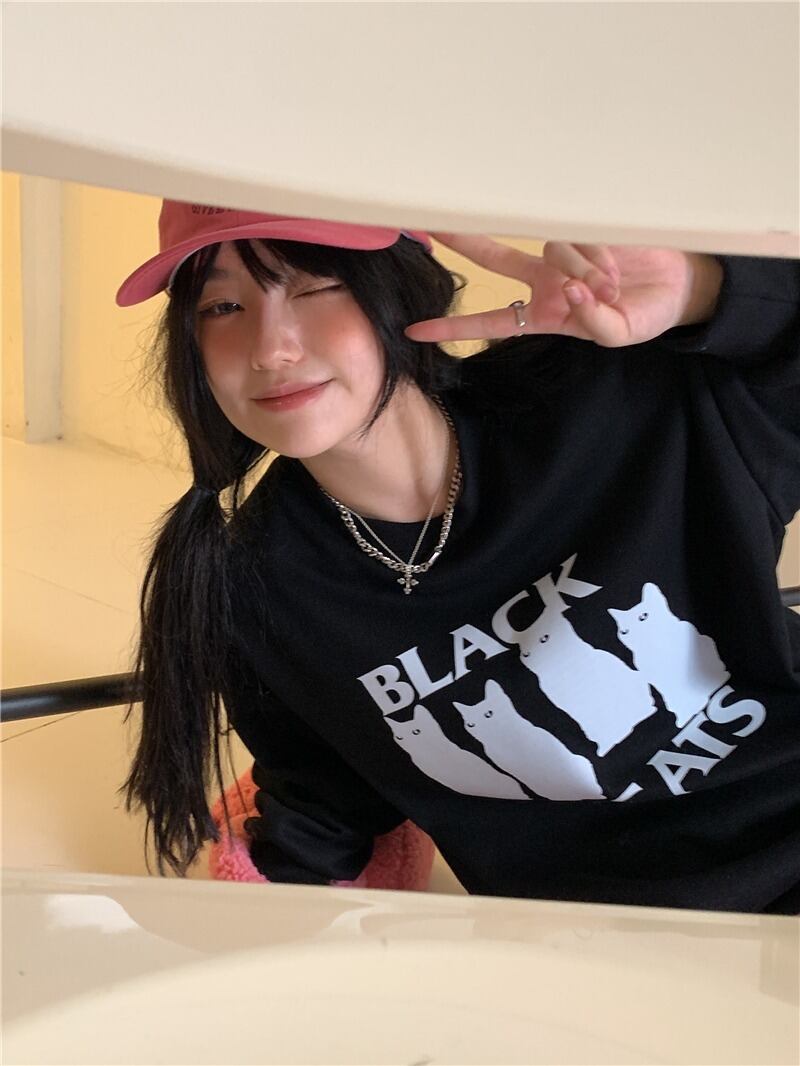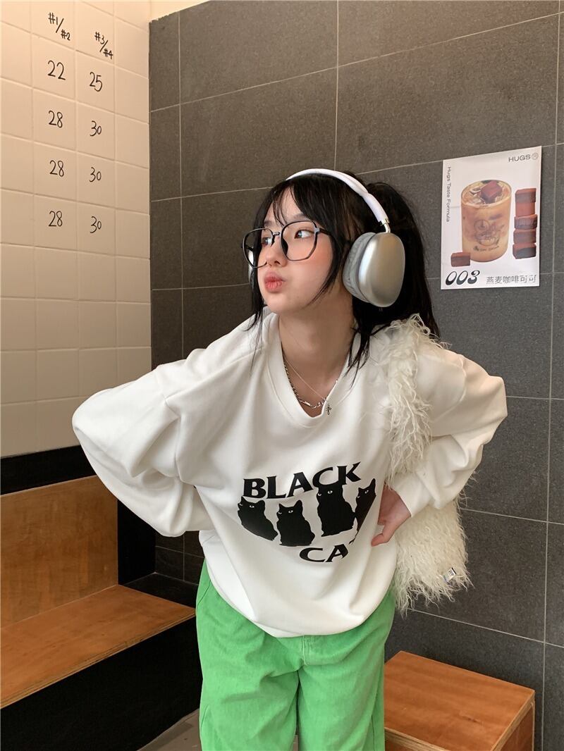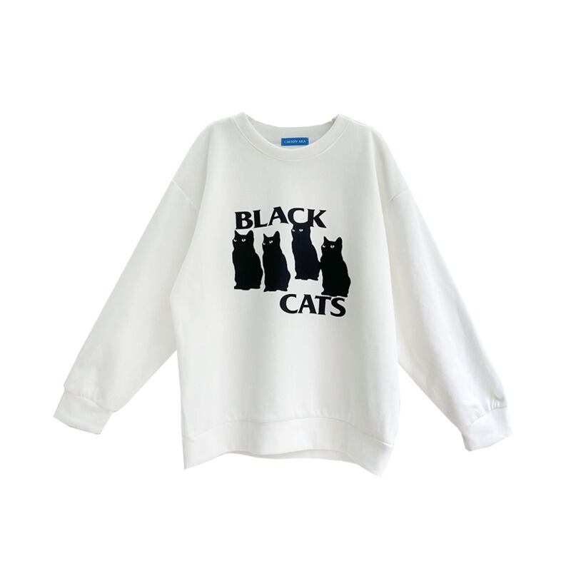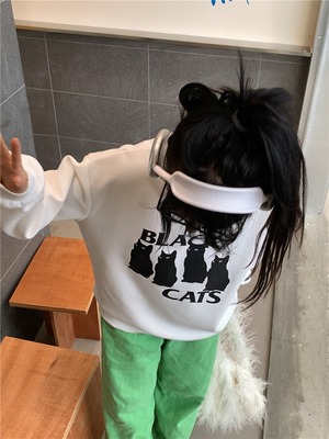【韓国通販 dgo】2colors キャットプリント スウェット ホワイト/ブラック(W3201)