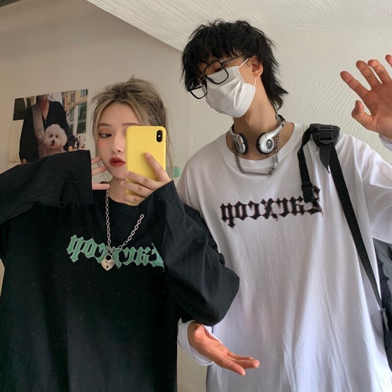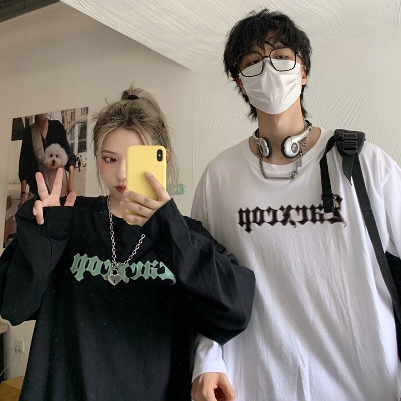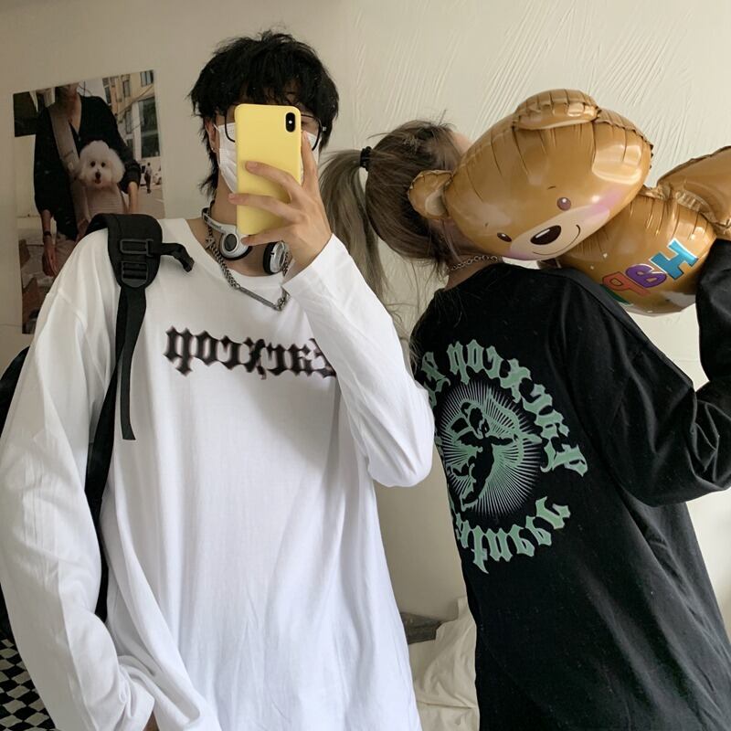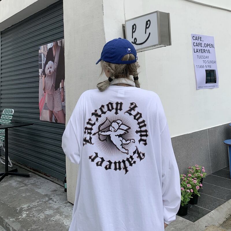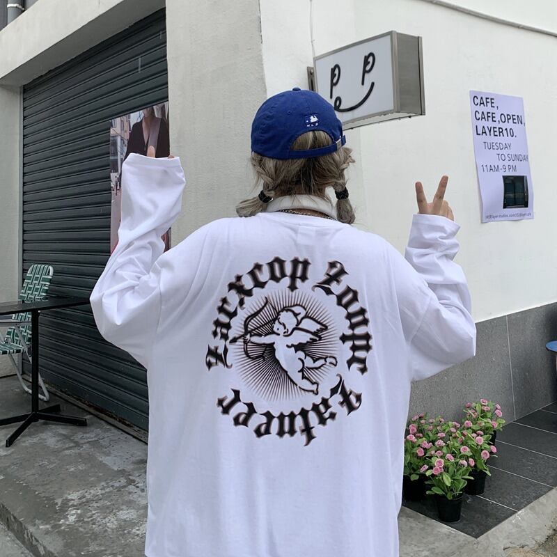 【韓国通販 dgo】2colors ユニセックス ゆったり エンジェルプリント ロンT ブラック/ホワイト(M3196)トレンドアイテム