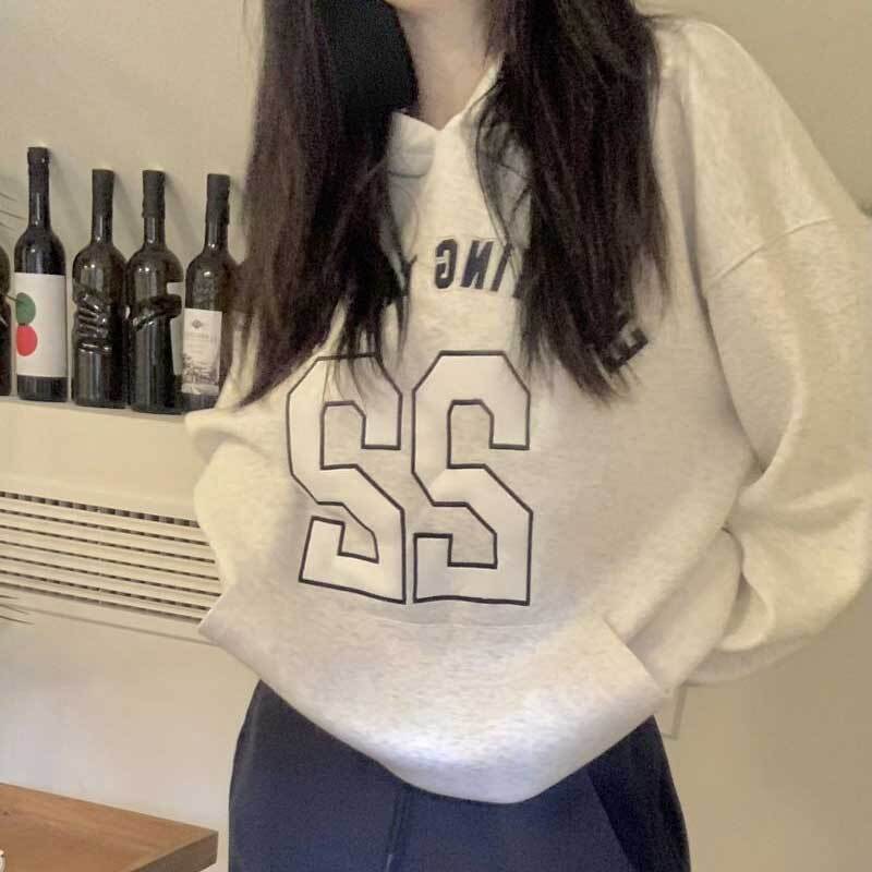【韓国通販 dgo】ナンバーロゴ プリント ゆったり フーディー ホワイトグレー(W3161)センス溢れるファッションitem