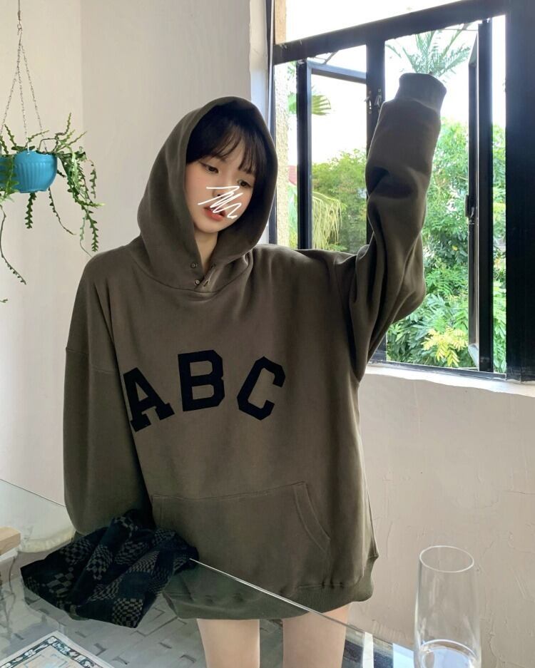 【韓国通販 dgo】2colors レタープリント プルオーバー フーディー 厚手 アイボリー/グリーン(W3158)